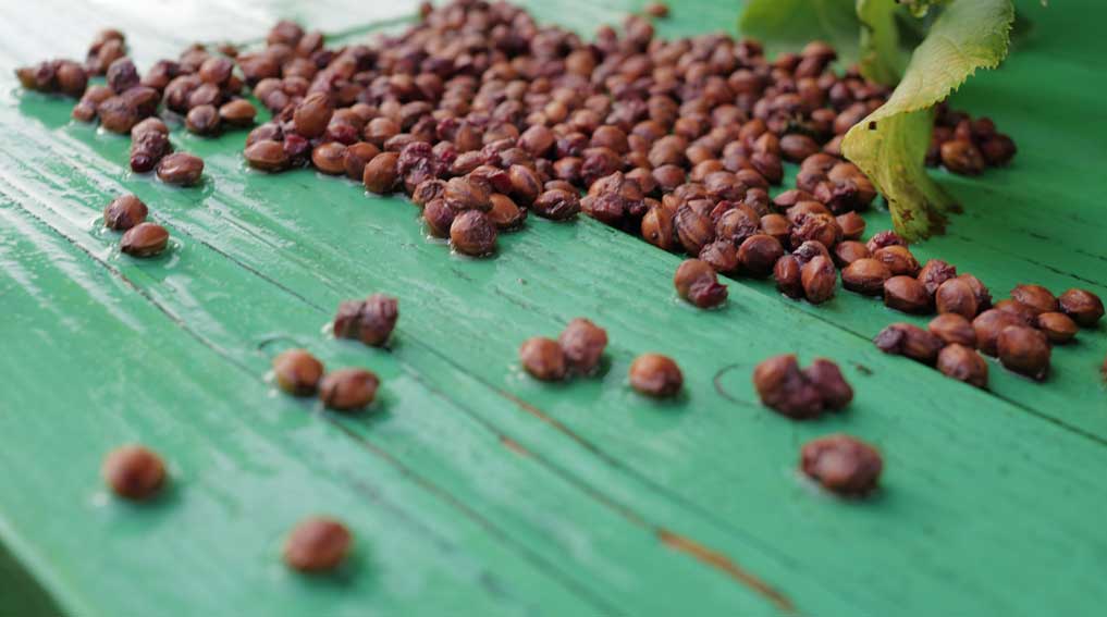 Und das Ausgespuckte wird uns wärmen im Winter aus dem warmen Ofen.