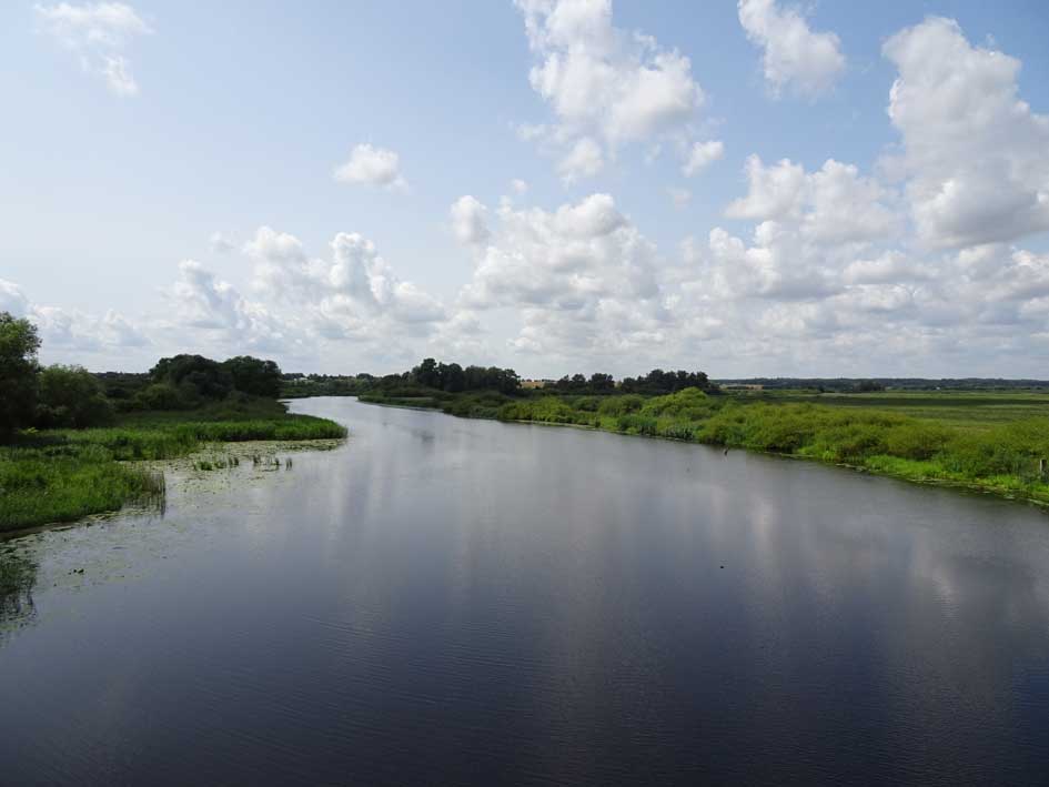 An der Trebel hier dem Fluss der Kindheit Seerosen wieder mit Sommerwolken als sei alles gut.