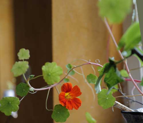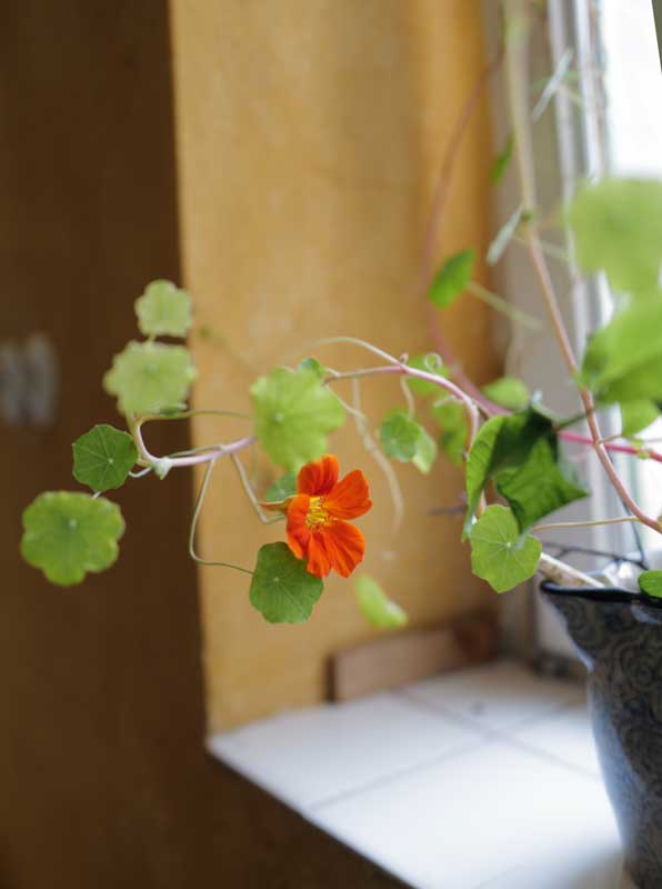 gestern, dass sie blüht nun, die Kapzinerkresse. Endlich nach 6 Monaten Wi nter treulich gehalten, dass keinen Frost sie erreicht im sonst leeren Haus, unter vielen Vasen und Töpfen diese Eine.