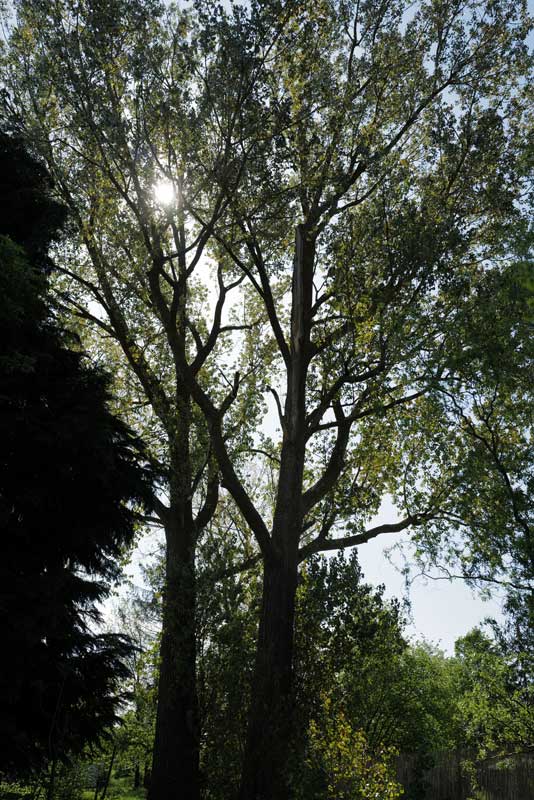 Die hohen Pappeln gehören eigentlich nicht hierher unter Häusern in dem brüchigen Alter, aber hier lieben