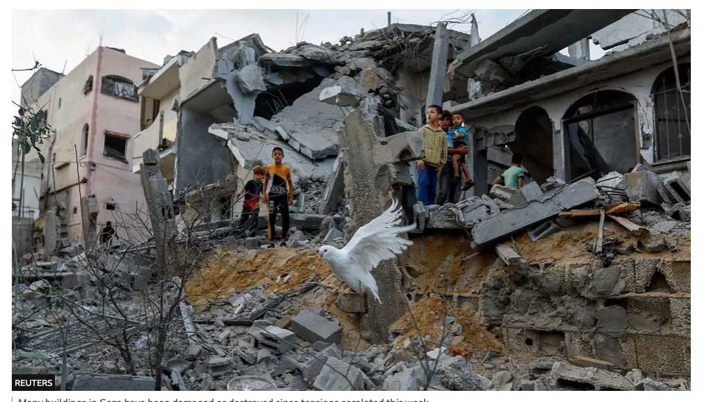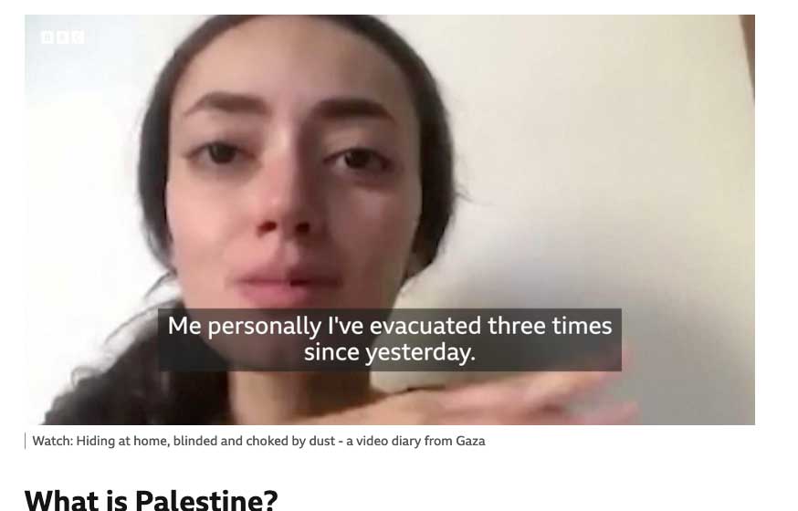 Man sieht aus dem Inneren eines Hauses in GAZA dies Aufnahmen wie es ist, wenn die Einschläge kommen, aus dem Fenster auch, auf Strassen und Plätze. De Menschen dort. Ein Film aus dem Bid-Telfeon für die BBC.