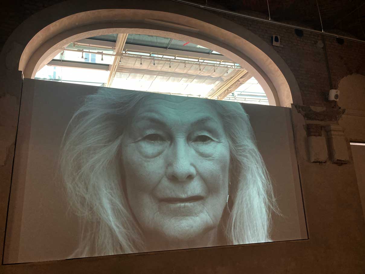 leerer Bühne, sie allein auf 2x 2 Meter Grundfläche, wie das Zimmer der Proben erlaubte. Später so als Film im Studio auf kleinstem Raum dunkel und sonst Nichts.
