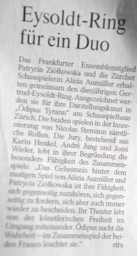 Dieser Eysold Ring, heute ein Markenzeichen im Theater aus privater Hand, gestiftetet, vom erste Kritiker unseres ersten Films aus Sardinien mit schönen Worten in Deutschland. Er hatte ein Erbe zu verwalten. Edith Clever war eine der Ersten für Penthesilea, die er dazu traf mit dieser Gabe, viele Jahre später.