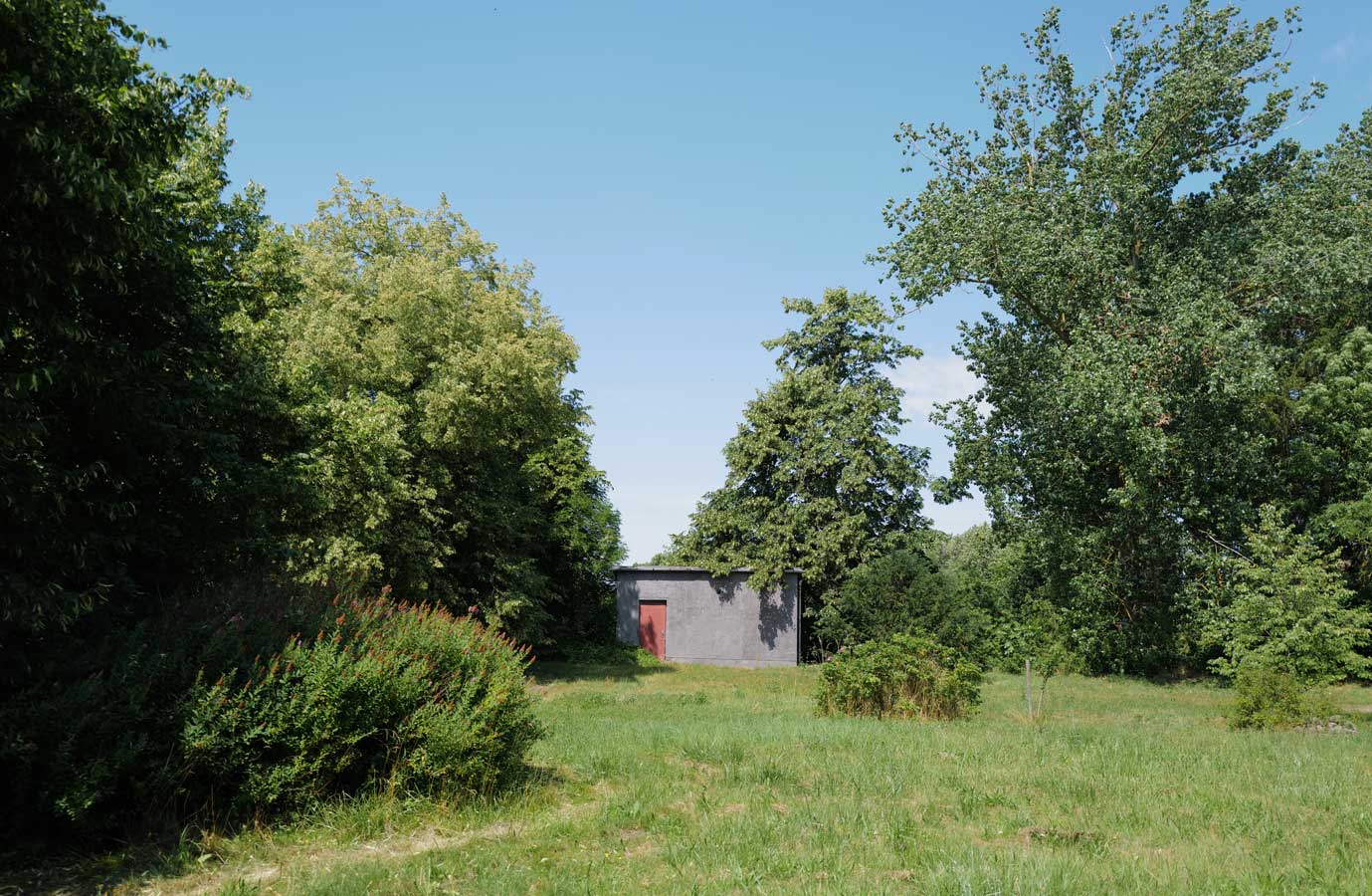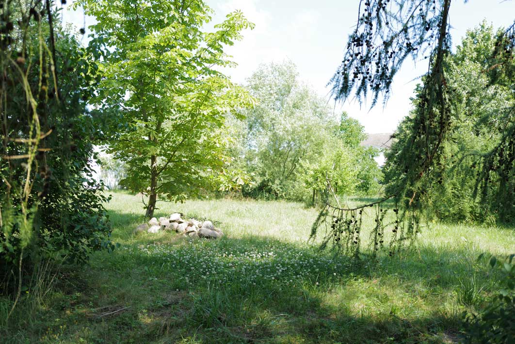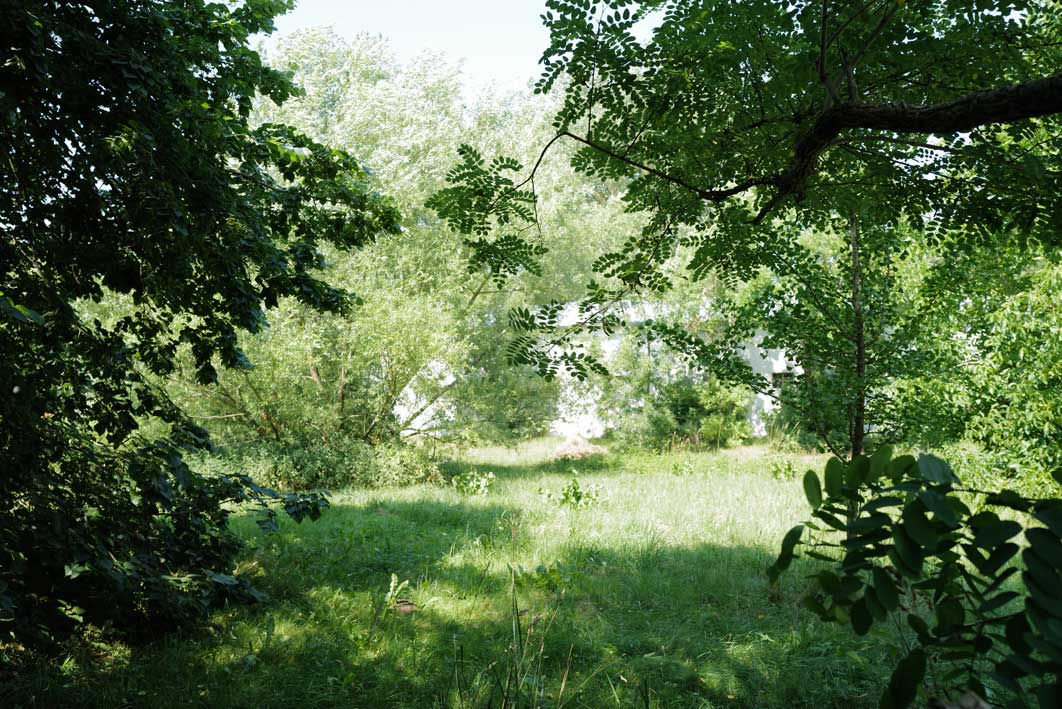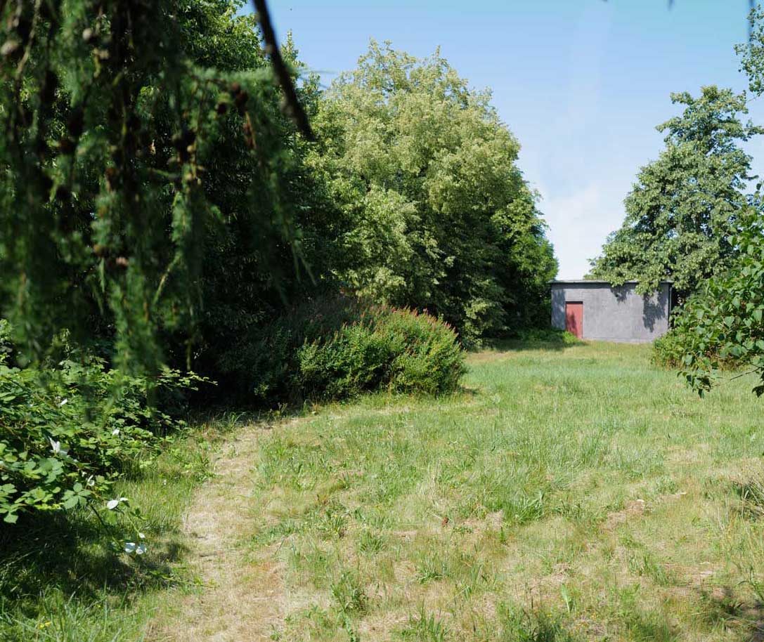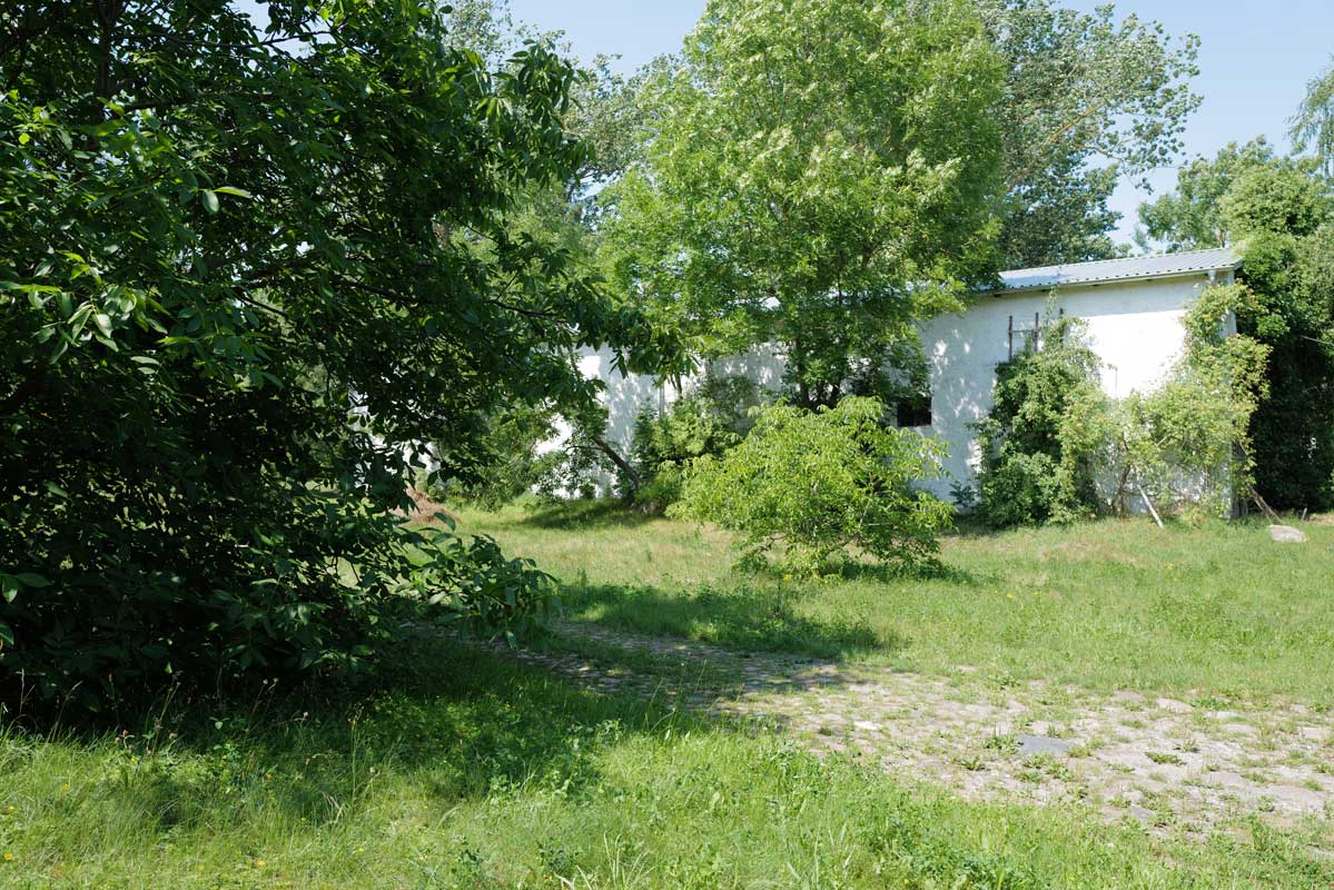 Mit dem Blick auch über die Felder bis zum Wald, ins Offne, nachdem Pferde- und Schweineställe vorne nun weg sind. Macht was draus. Gemacht.
