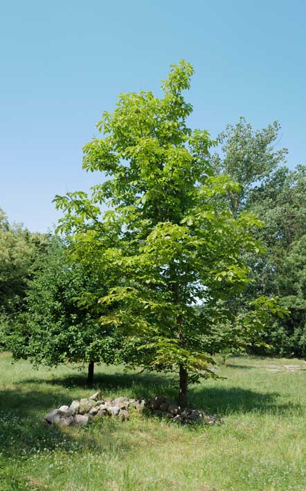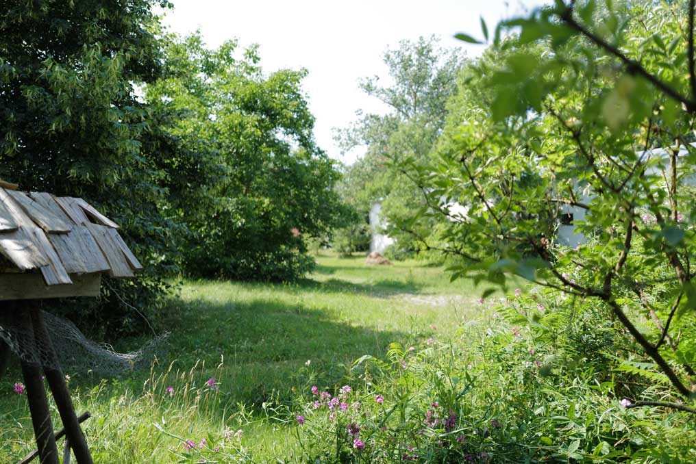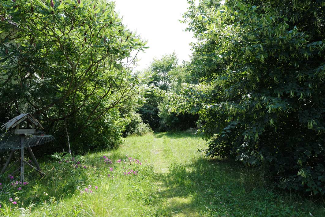 Immer am Kuhstall entlang, südwestliche Ecke, wo die Steine liegen die Kastanie mit besonderem Geschick aus Berlin, dem Balkon aus dem Topf hierher gepflanzt. Stattlich in der Mitte nun.