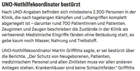 Keine kriegentscheidende Waffen gefunden in Krankenhaus