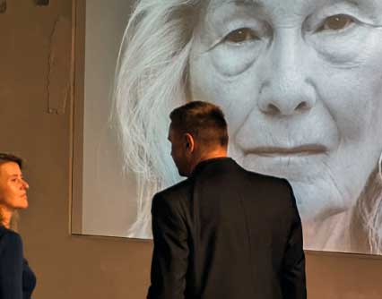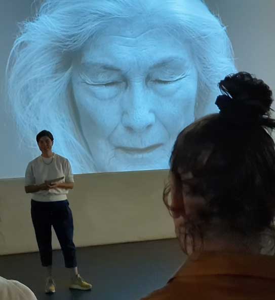 Und was zu sagen wäre, wenn zwei von Theater und Film zusammenkommen im nicht vorhanden Raum, dass sie zur Skulptur (Werner.Stötzer) werden werden der Worte(Heiner Müller) selbst. Ohne Stoff und Auftrag als sich selbst, zur Musik auch in Bewegungen und Bildern. Dieser Zeit.