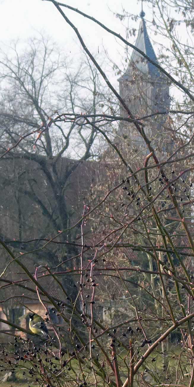 Dies ist der Turm der Kirche in Nossendorf wieder hergestellt. Aus unseren Fenster des Hauses zu sehen wieder entstanden.