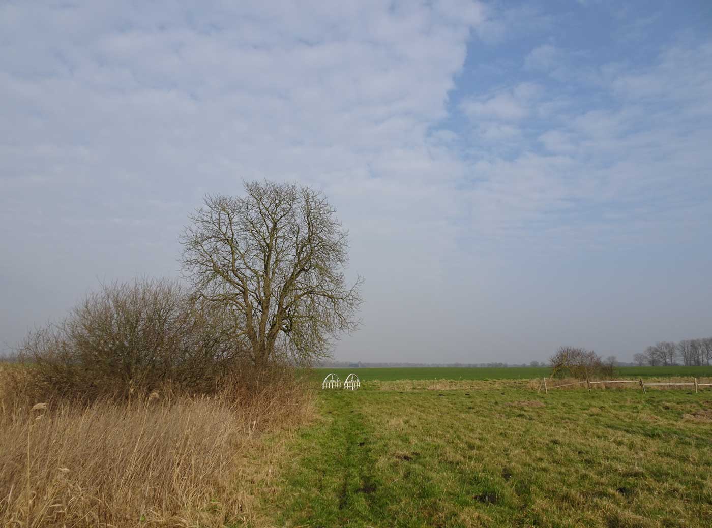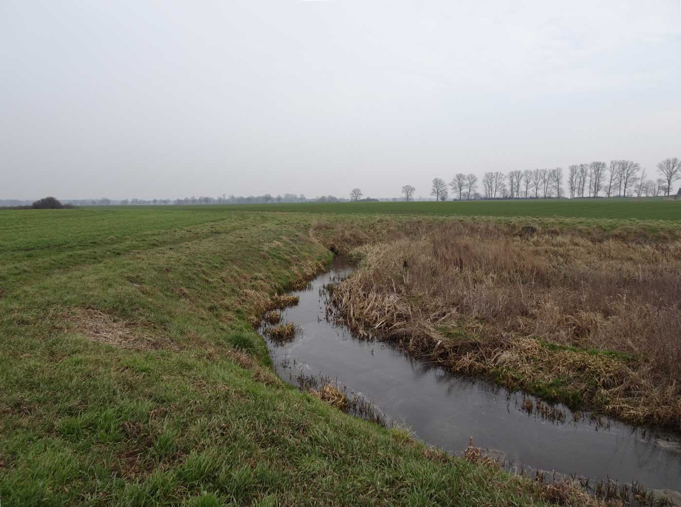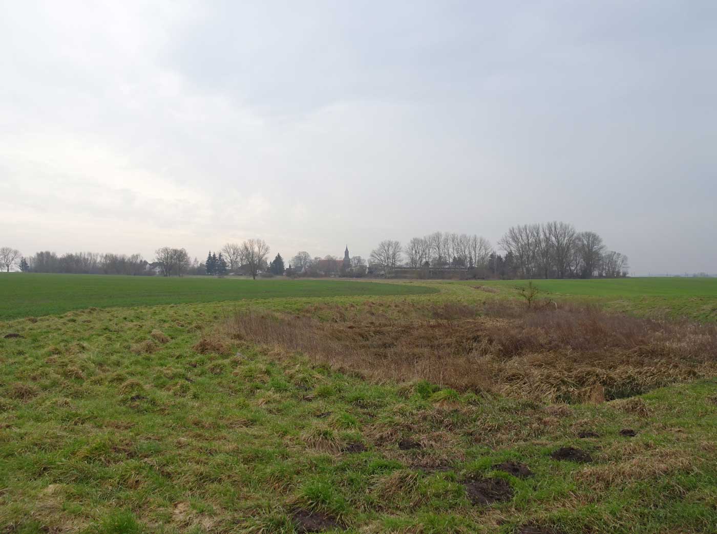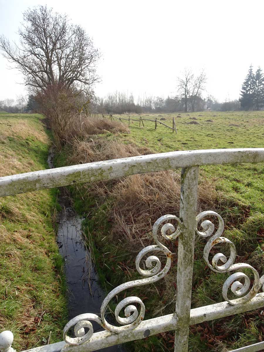 Auch der Graben ist noch da hinüber zu gehen ins Feld.
