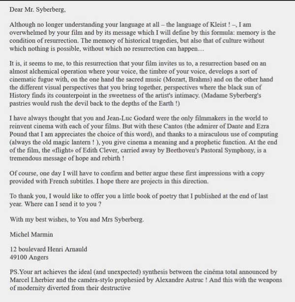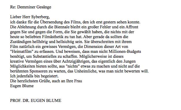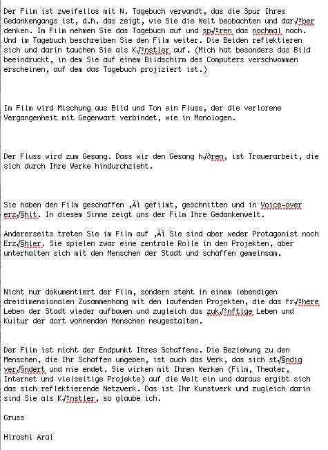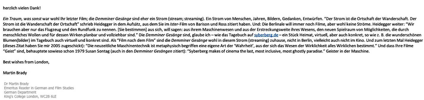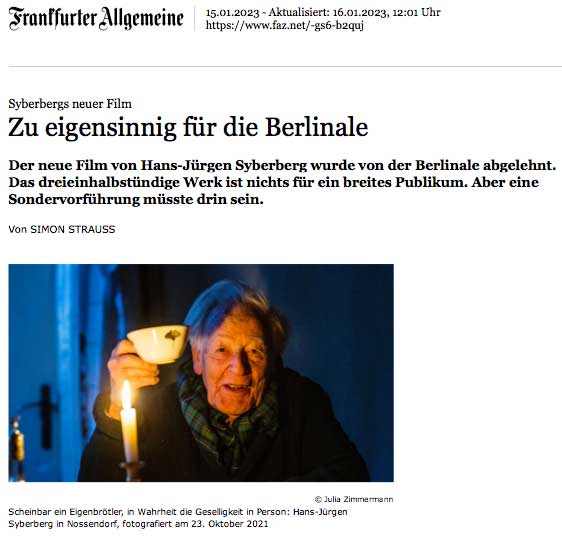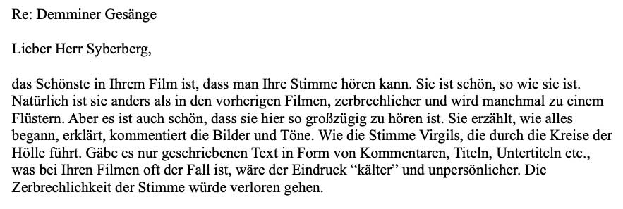 "Den Dezembertermin versuche ich. Den Film hatte ich in voller Länge auf dem Bildschirm angeshen- so eindruchsvoll und anrührend. Wie gut, dass die Volksbühne das jetzt zeigt." NH