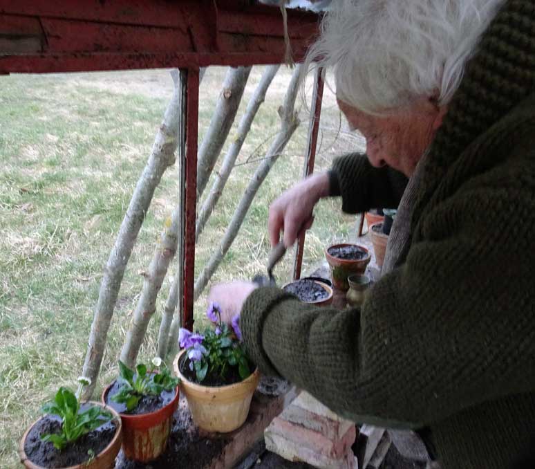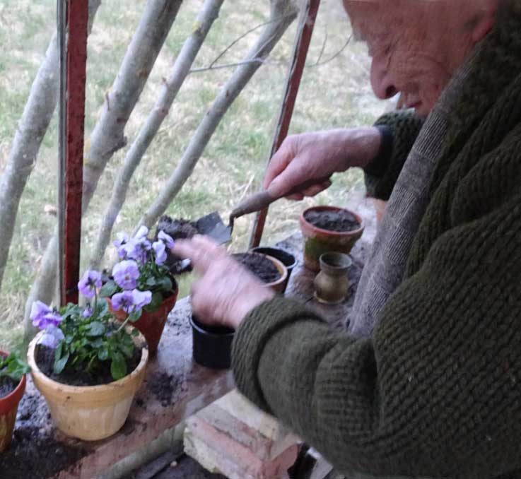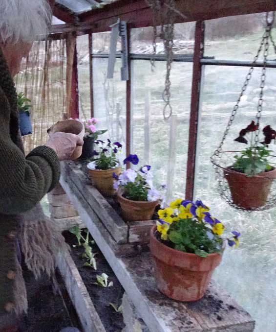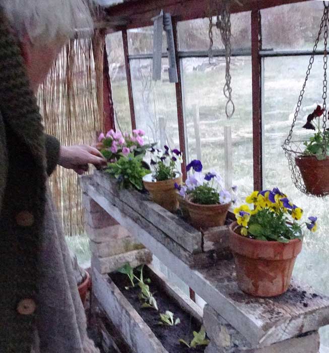 Die neuen Pflanzen im Glashaus brauchen Erde und Wasser.