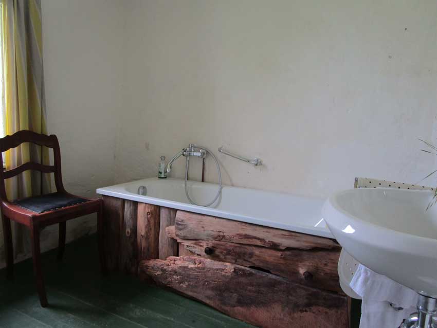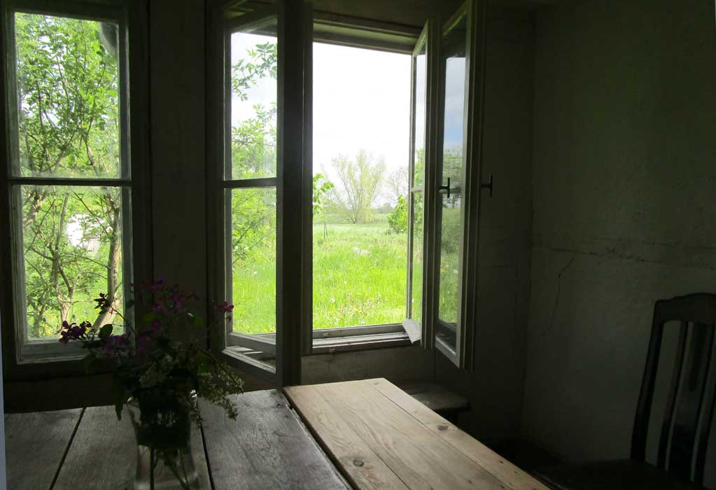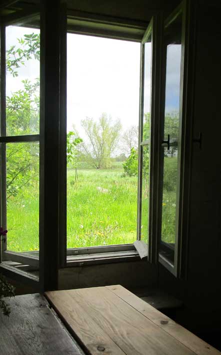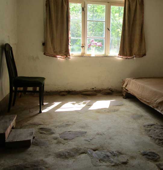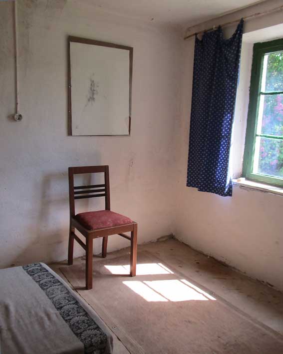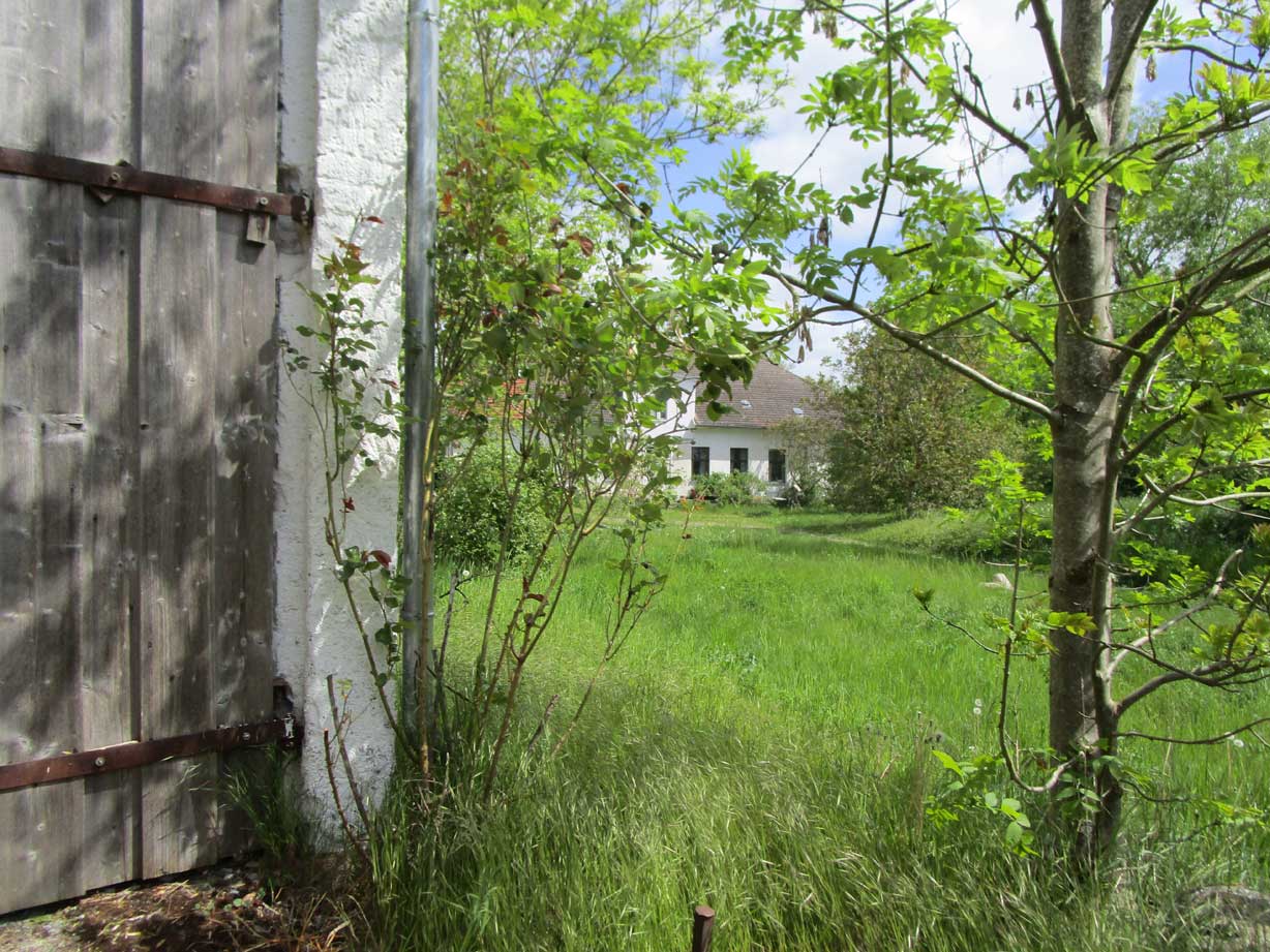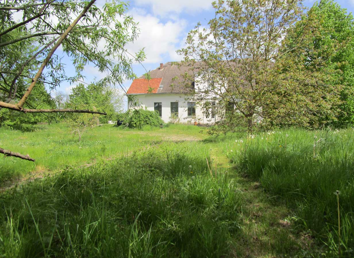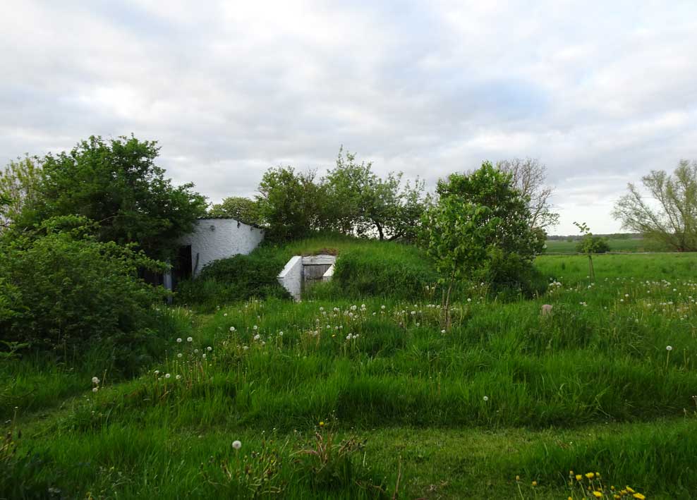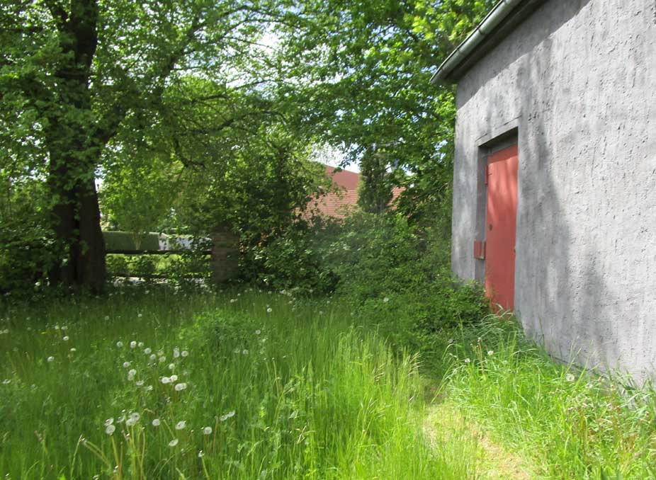 An der alten Scheune und dem Bunker vorbei das Haus.