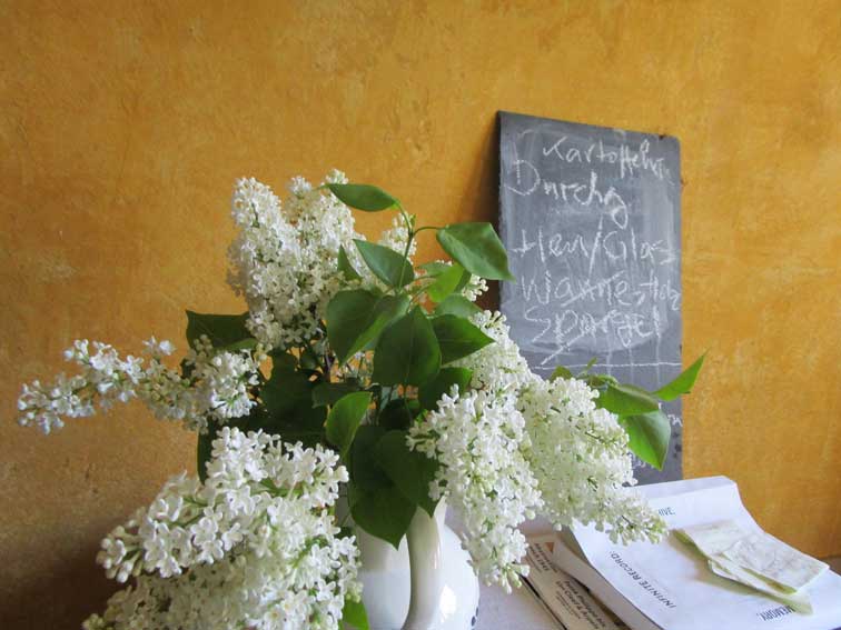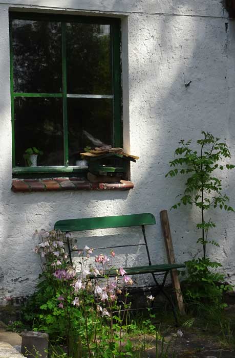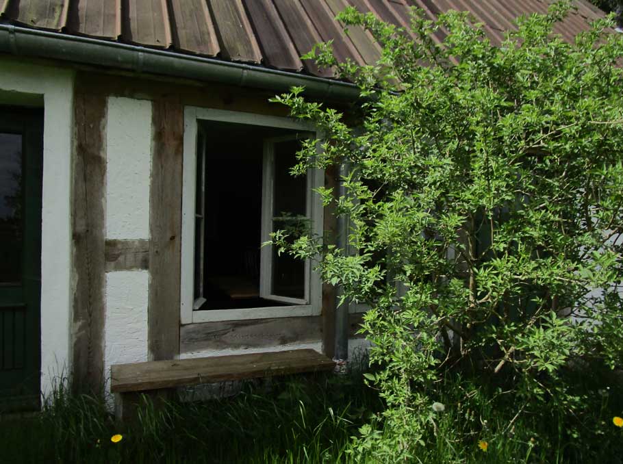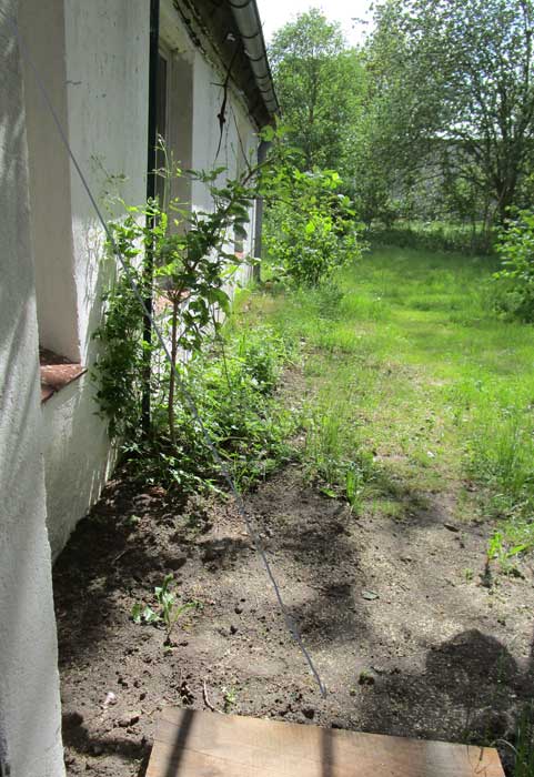 Der Hollunder hat durchgehalten trotz neuer Wand nach Art des Fachwerks.