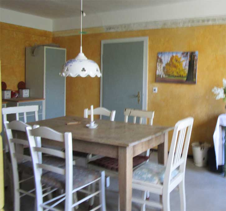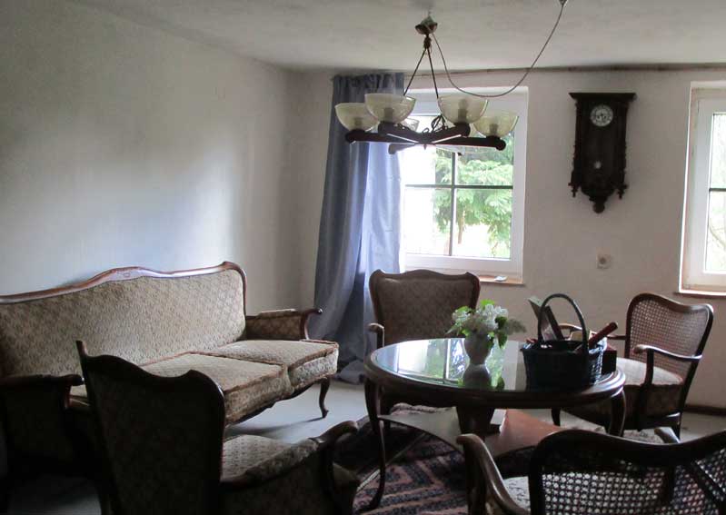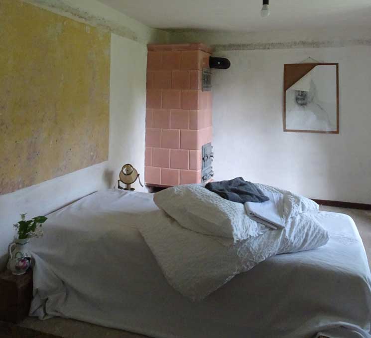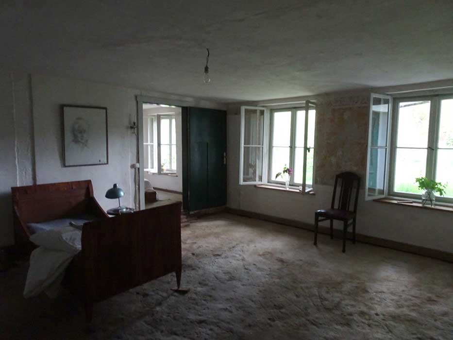 Das Lehmzimmer 2 mitz eingesatzen Feldsteinen wie gefunden im Fundament der Räume