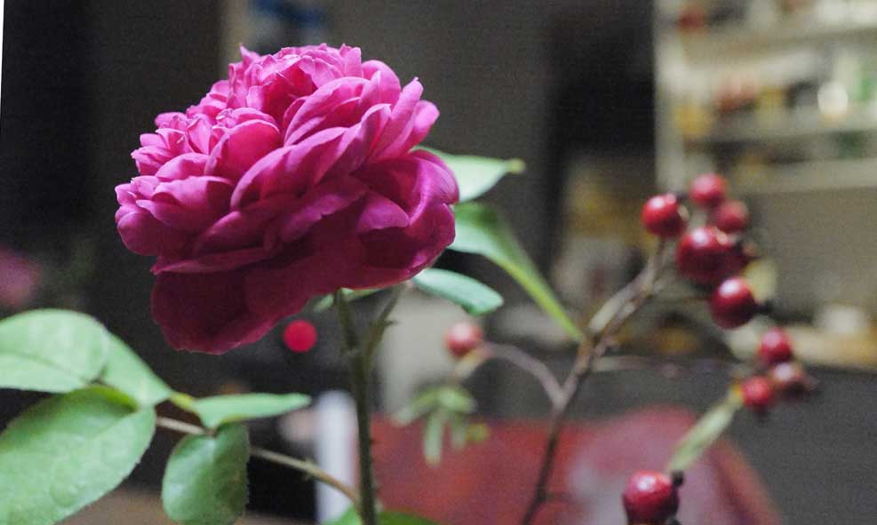Nochmal im Herbst des Vaters Rose auf dem Grab in G.