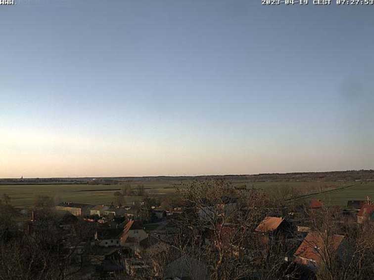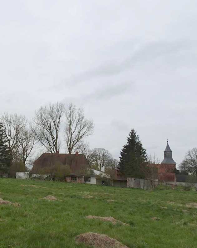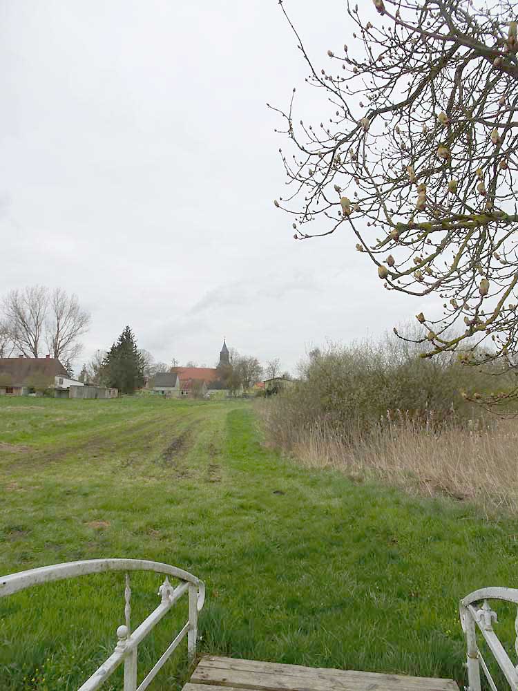 Etwas verschobene Perspekive des Turms auf die Lage des Guts. Dohlen. Nicht Böses also.