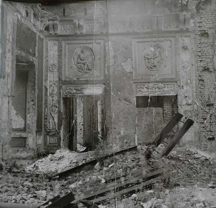 Aus dem Schloss in Berlin vor dem Untergang, wo die Prinzessinen von Schadow herkommen und nun Hintergrund der Marquise von O... von Kleist bei uns. Auch dem Norden geweiht. Hier Prospekt der Scheune als Halle, was für ein Kabinett in Pommern nun. Neben den Prospekten von Demmin, vor 45