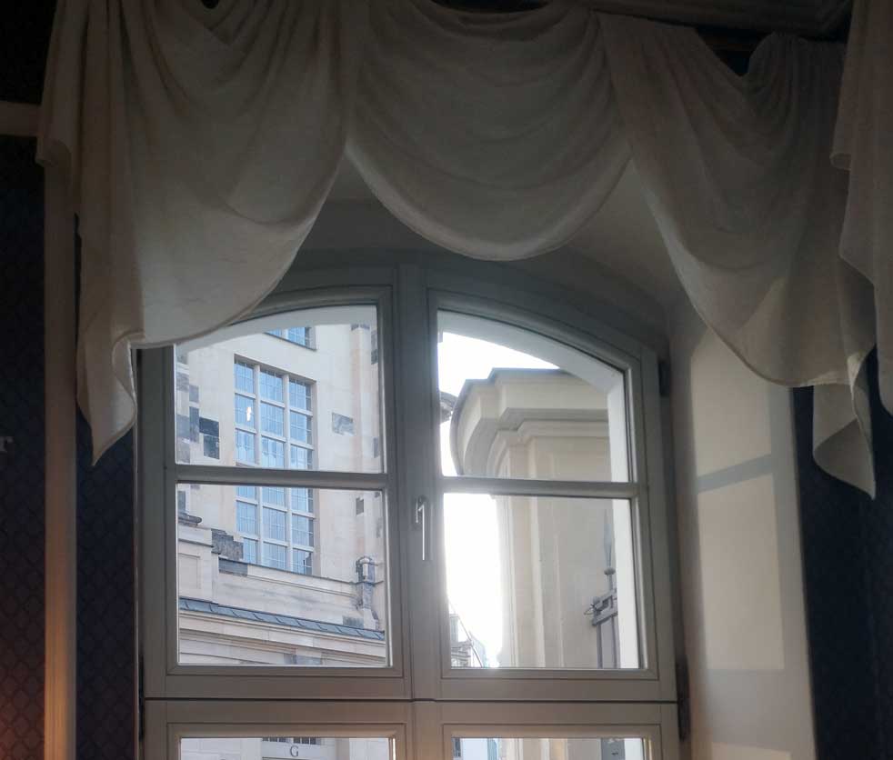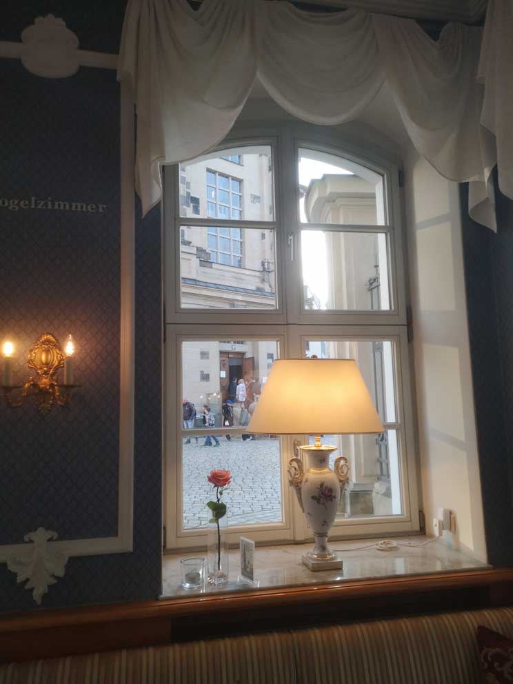 "Aus Dresden. Jetzt noch Café Cosel an der Frauenkirche. Später Konzert (Gustav Mahler) - 90. der UK! Wunderbar.