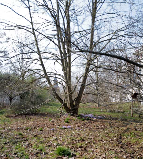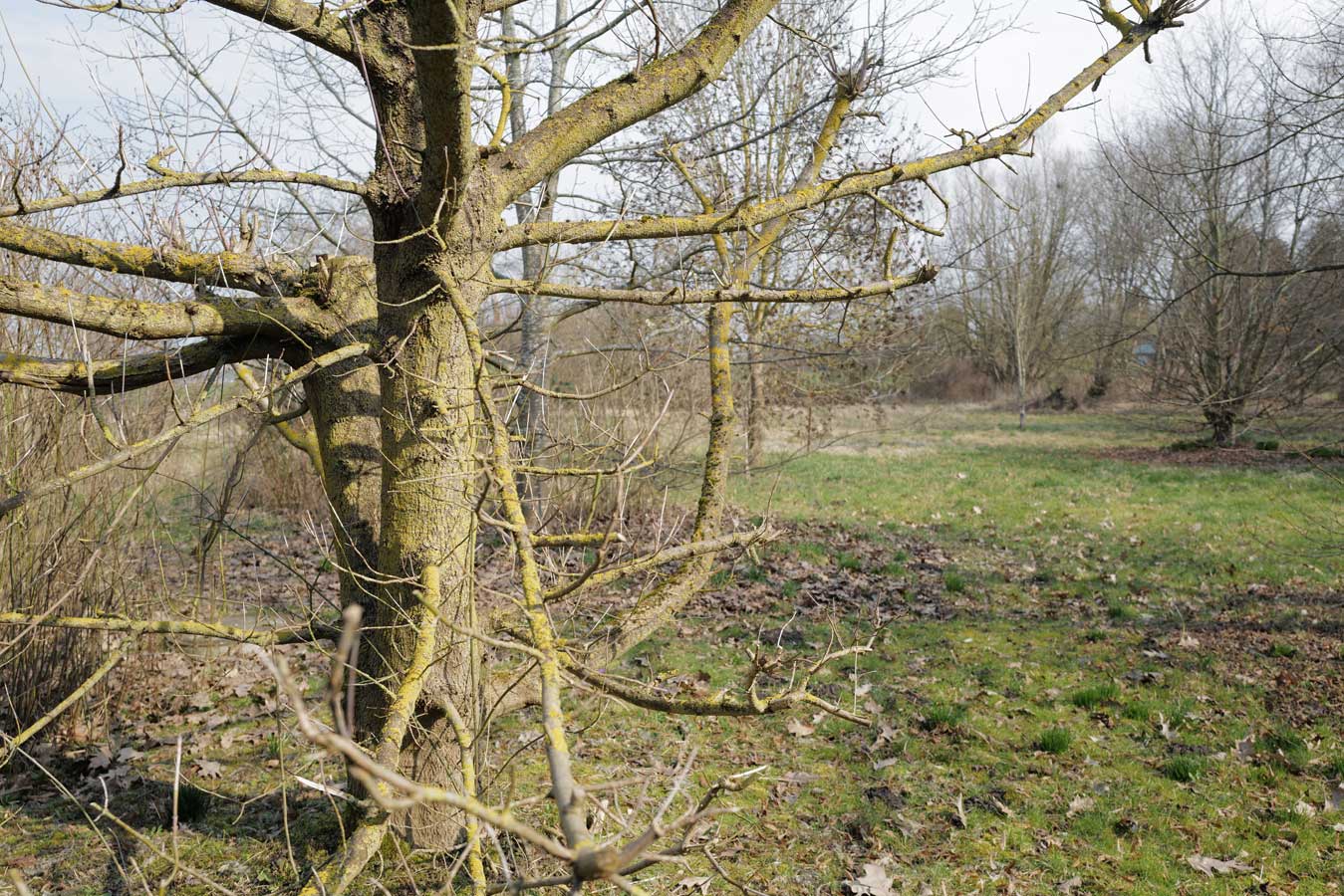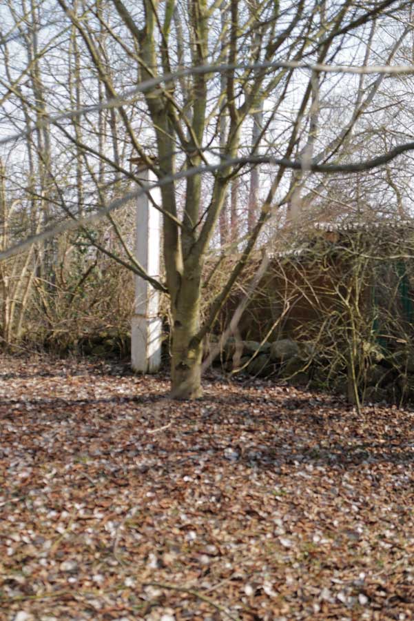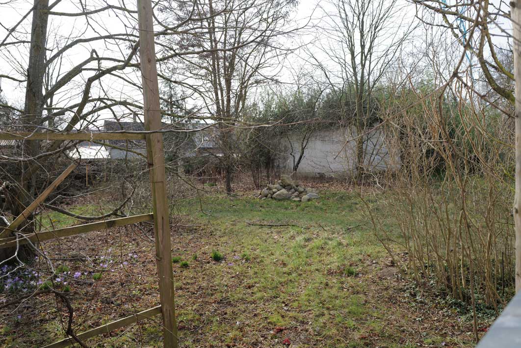 vor neu gepflanzten Bäumen rundum