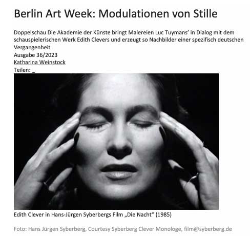 Diese NACHT entstand vor 40 Jahren nach dem Hitler-Film aus Deutschland in neuer Freiheit eines dadurch erreichten Kunstwerks und muss nicht mehr zurück in solche anderen Gefilde mit ganzen anderen Lasten beladen. Darüber waren wir uns einig. Das Titel Bilde der FAZ dazu zeigt die Flucht in das Theater Jahr1967. Dem die Nacht entkommen war. Dies wollten sie dort für die Online Ausgabe nicht wiederholen.