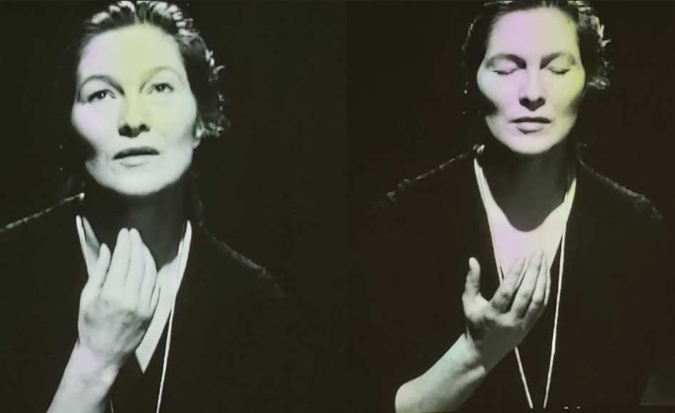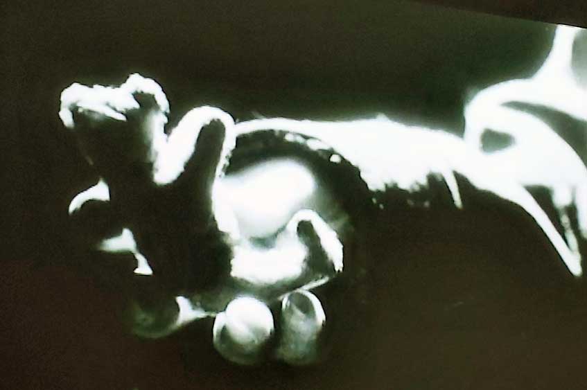 Dies Foto aus dem Studio LT. zu einer Ausstellung, wo DIE NACHT gezeigt wird, hätte dafür nie gemacht und gezeigt werden dürfen. Versprochen war mich nicht einzumischen. Es zeigt nicht die 82 jährige EC, die die Nacht im Film nebenan gemacht hat, sondern den Kunstwillen dessen, der es herstellen liess in seiner Zeit. Damit übernahm er die Deutungshoheit auch in den ihr zugedachten Räumen. Mit einer Nacht in fragmentarischer Gestalt. Deren Chronologie aber erhalten blieb und so die Unantastbarkeit in ihrem Ablauf.