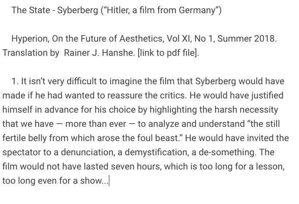 Im Film-Heft von Serge Daney Paris 1978. Zum ersten Mal N. auf Papier. Von dem dieser Demmin-Film ausging.