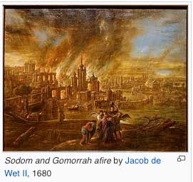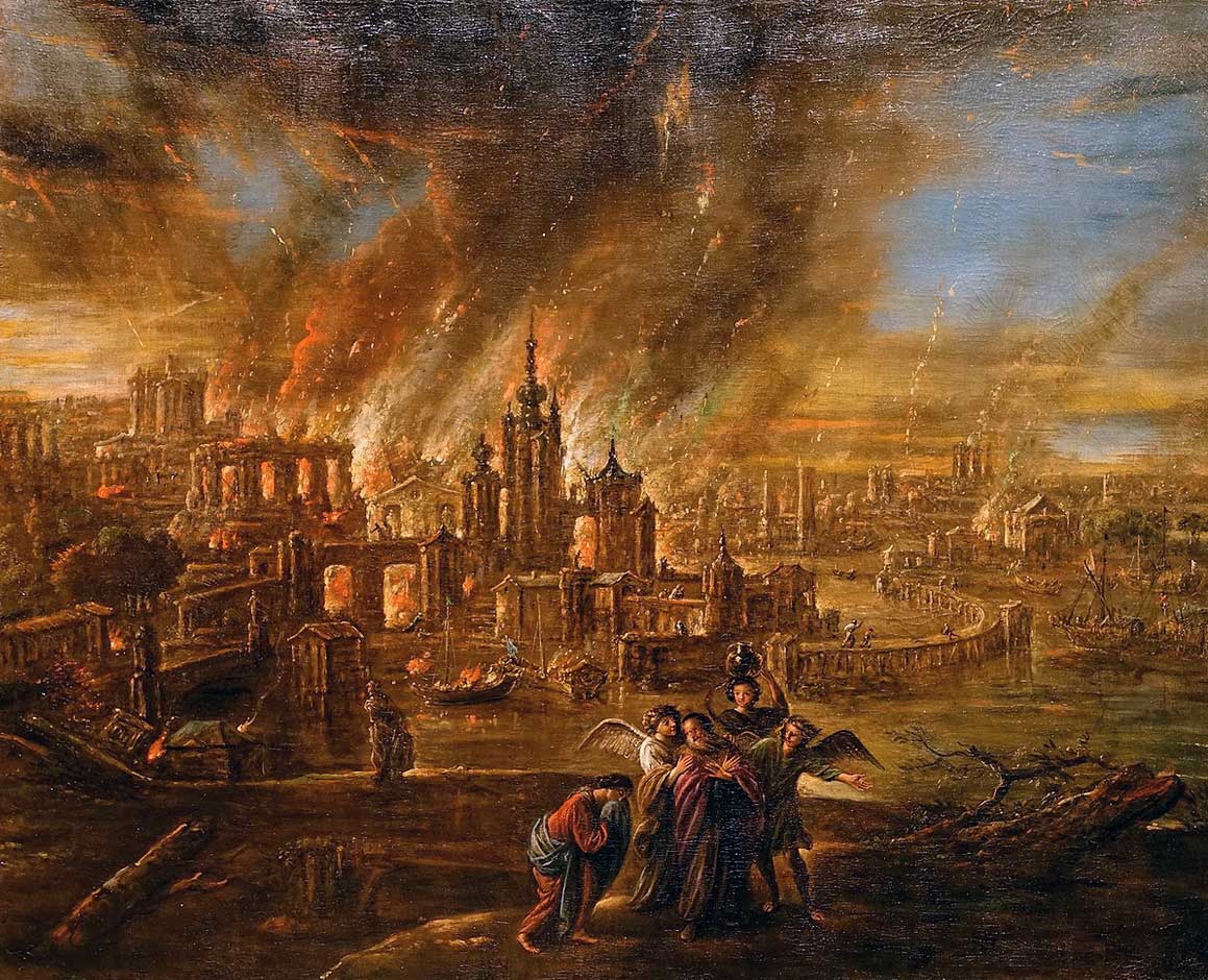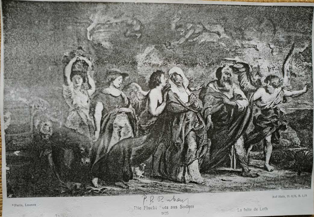 L. und seine Töchter kamen durch, seine Frau nicht, sie erstarrte zur Salzsäule, wie es bei Luther in der Bibel heisst, weil sie den Blick, trotz aller Warnungen zurück wandte.