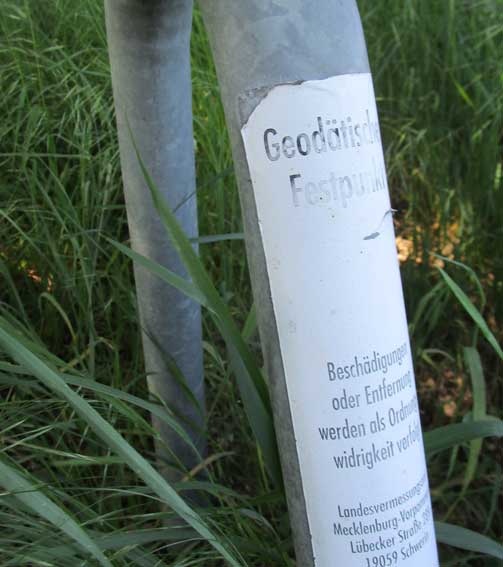 an der Strasse unter Hochspannungsmasten übers Land zugewachsen als geodätischer Ort markiert