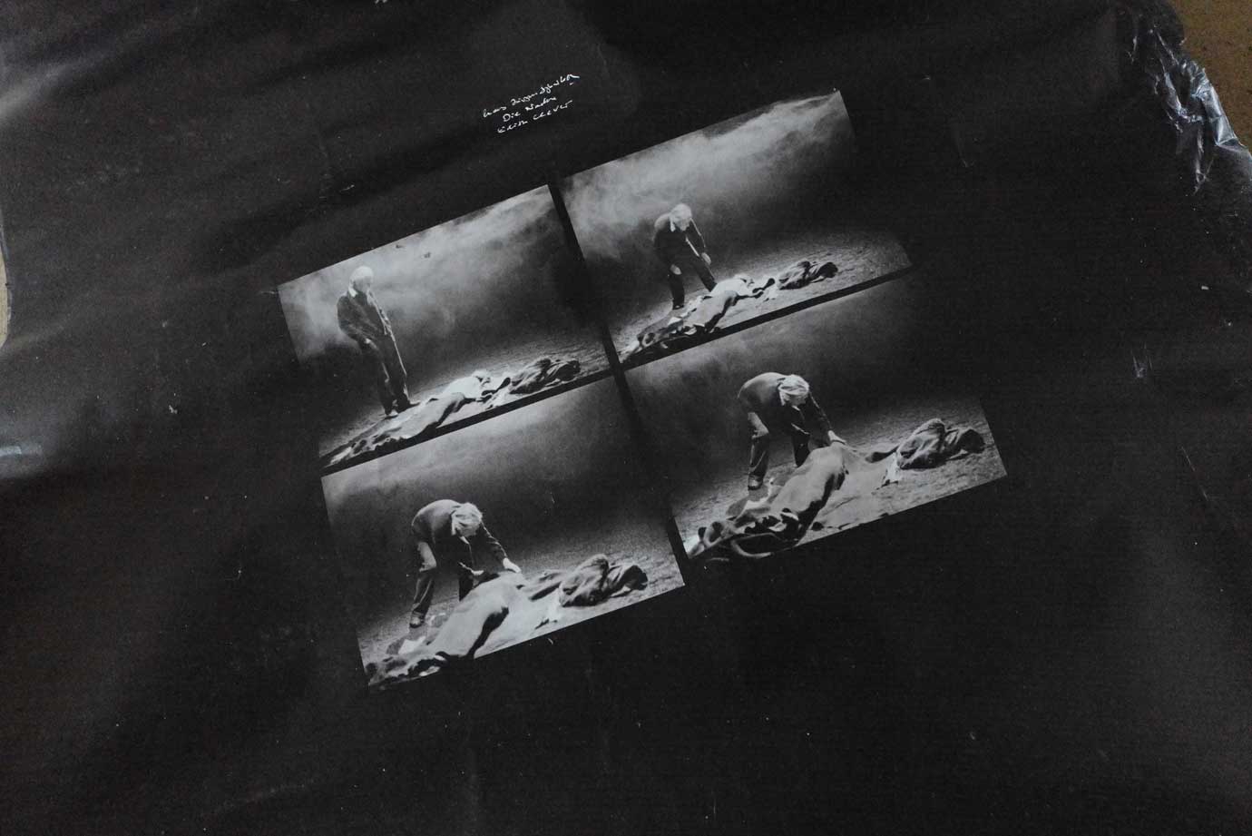 Diese Dienste, hier als Film, in Kleists Worten und unseren Möglichkeiten sie zu beleben, haben mit den Räumen in der Akademie und ihrer Bilder aktuell, nichts zu tun. Hier als Anmerkungen zu den Bildern wie sie damals entstanden, mit der Hand geschrieben von eben denen, die das versuchten, in dem Arbeitsbuch dazu.