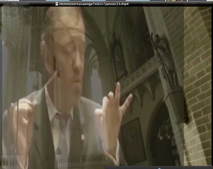 Am Ende des Films"Demminer Gesänge" 2023 demnächst wird man V. Gergiev aus Russland sehen wie er das Deutsche Requiem von Brahms dirigiert, montiert in St. Bartholomaei von Demmin, das einzige Haus, das 1945 im Zentrum