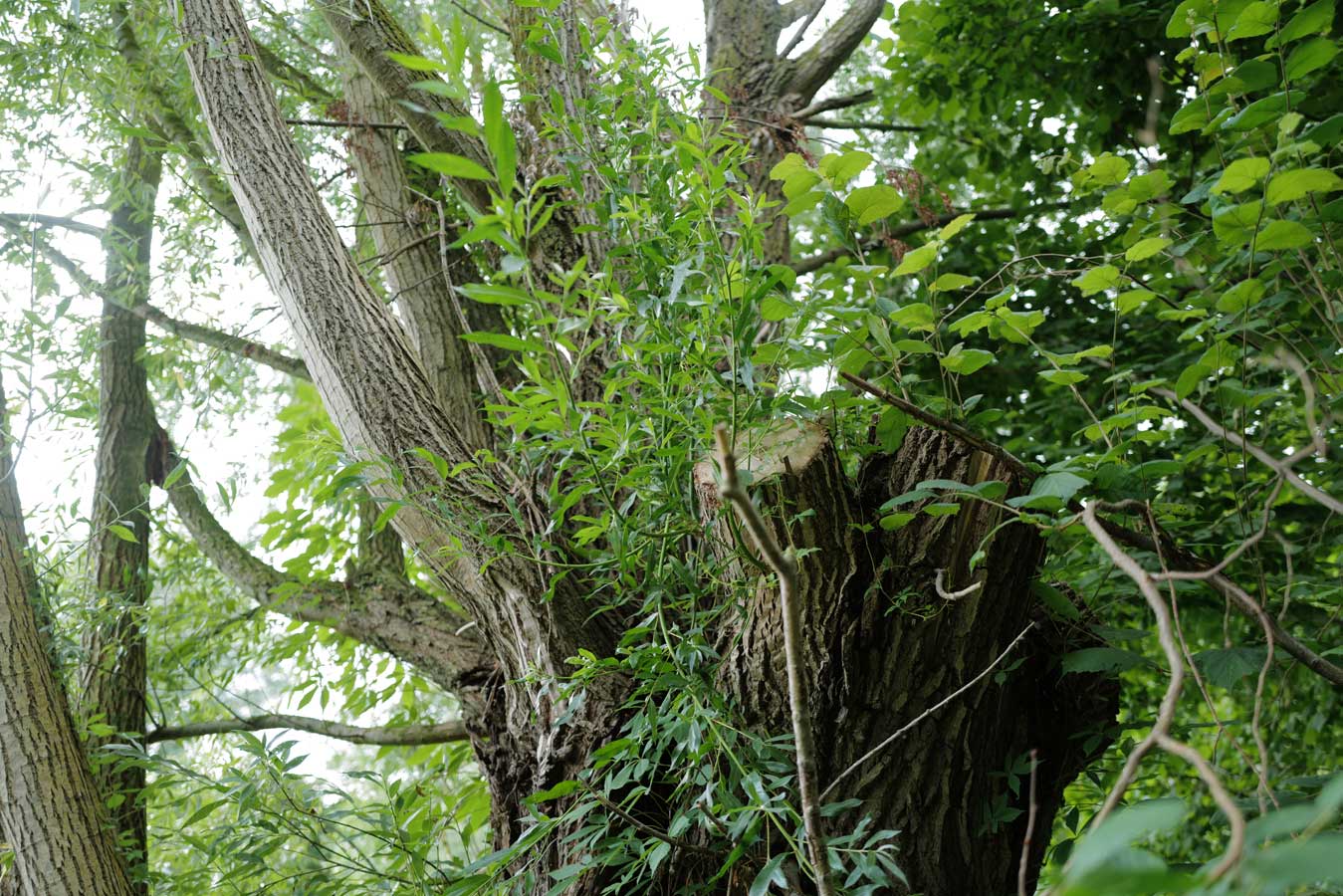 Hier im Park nun das Panorama ohne Ulme der Mitte, die Spuren ihres Sturzes im Frühjahr langsam verwachsend