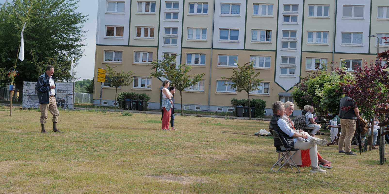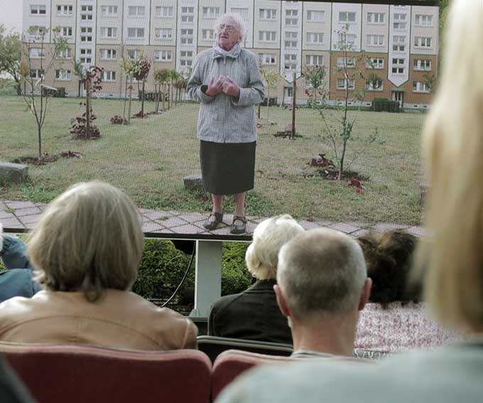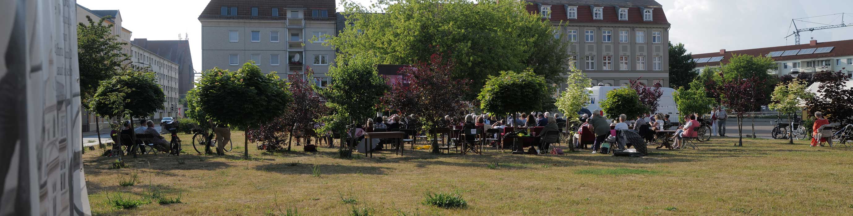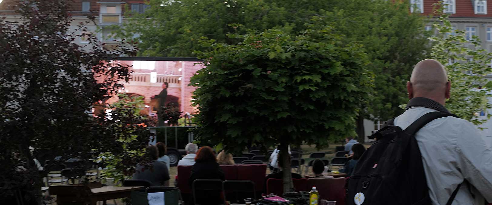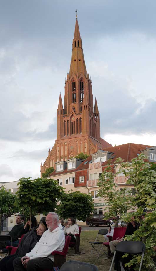 Die Präsentation des Films, den wir Demminer Gesänge nannten, nach der Pause unter freiem Himmel am Platz seiner Entstehung, war der Sinn der Installation.