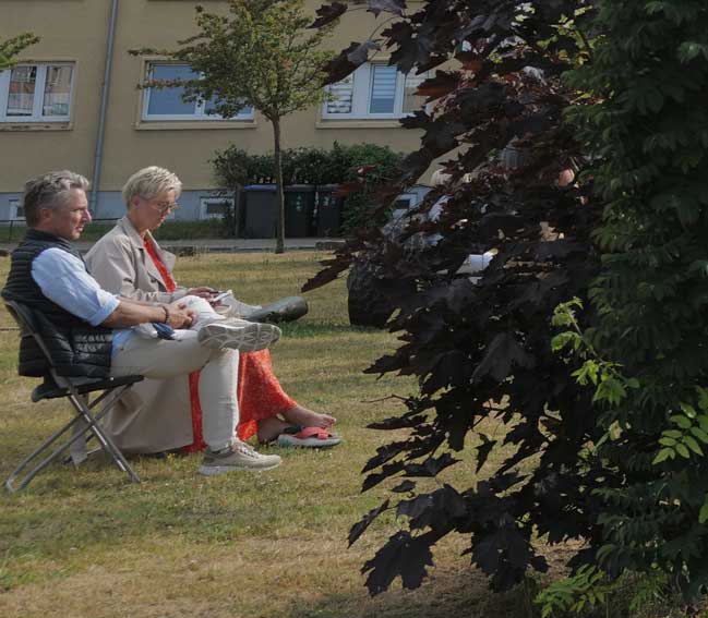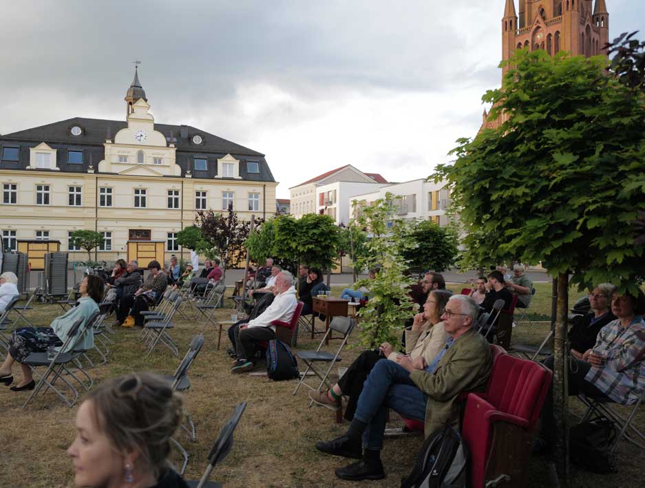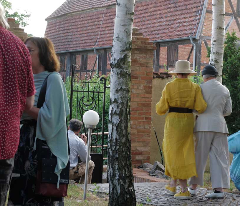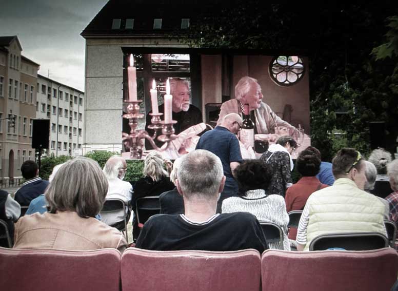 In die Stadt kamen viele von ausserhalb. Wie sonst nie. Nochmal: Aus ihrem Haus -Rathaus genannt-, die kamen nicht, die des Tourismus, der Umwelt und der Kultur oder was, als Demokratie beauftragt, ablehnte zu fördern, was hier geschah. Viele derjenigen, als der Film 2015 anfing, waren schon nicht mehr da. So Karl Schlösser, der Maler und Chronist und Fau Hirsch, die Heldin bei Farkas Überlebenden von 45, Hans Pölkow, der Freund aus Rostocker Schul-Tagen, und Frau Riesebeck, die Sängerin im Cafe Zilm.