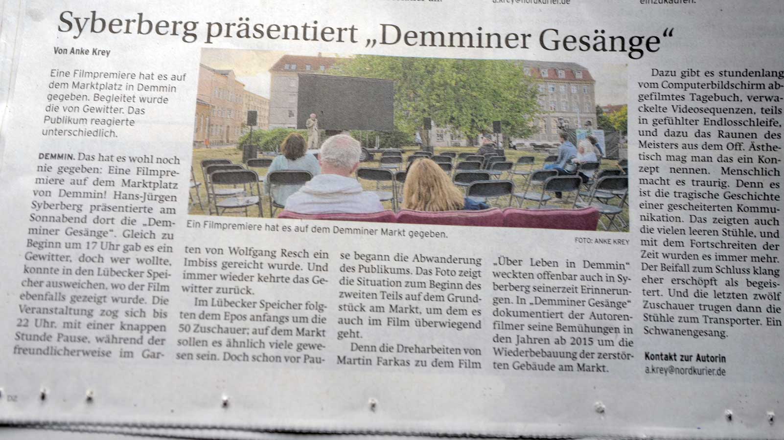 Der Vorbericht kam von der Aussenstelle des Norkurier und nach einem Anruf bei der Chefredakion in Neubrandenburg gerade noch zu spät für Wochenendplanungen im Sommer vor dem Start. Jetzt danach aber vom Ort auf Seite 13 unten das, was Demmins Zentrum betrifft. Nach den Berichten vom: grossem Andrang beim ersten Regionalmarkt und Immobilien sind das Schwergewicht des privaten Kreditgeschehens und filmreifes Leben in den Gutsanlagen der Region.
