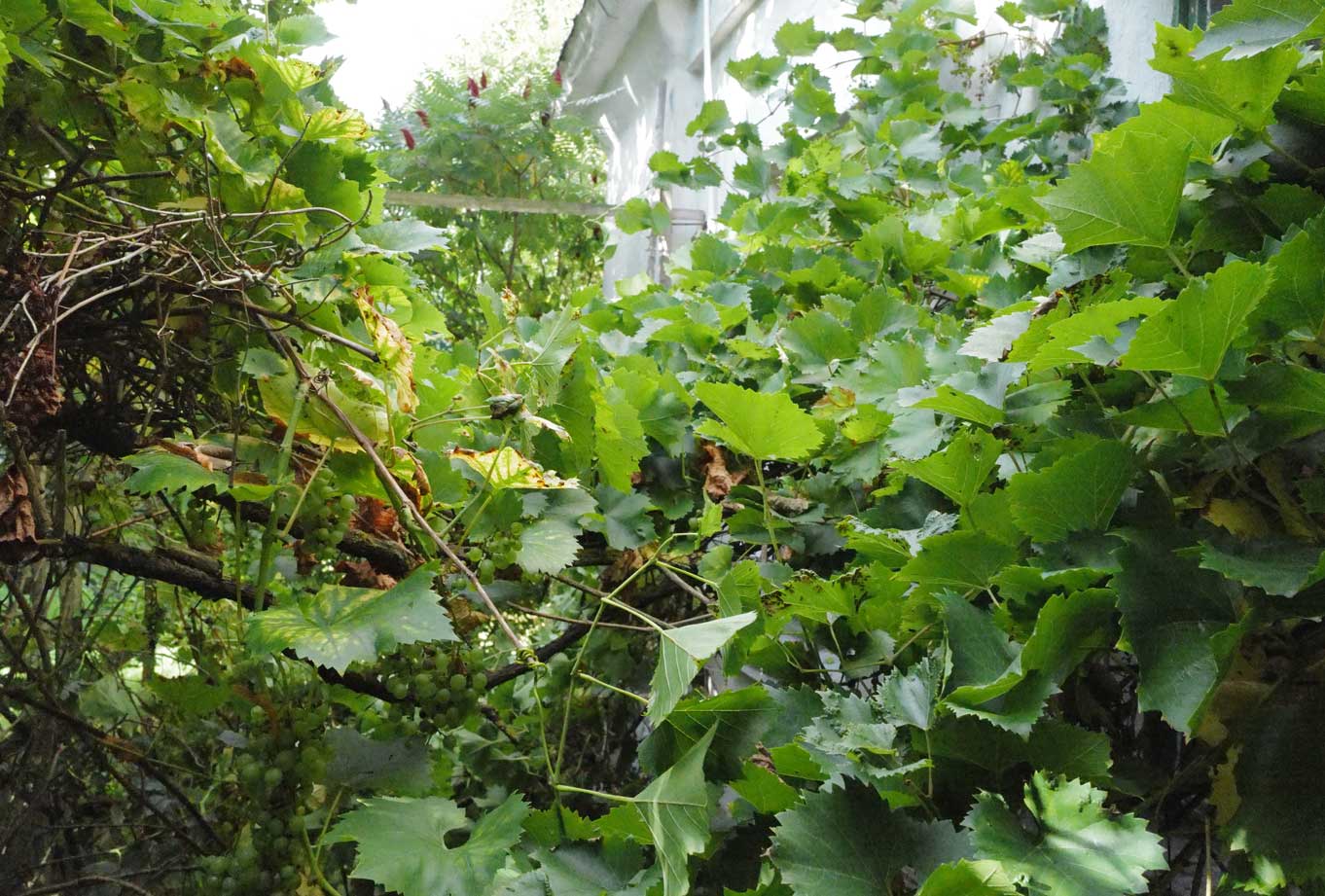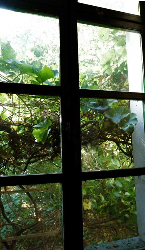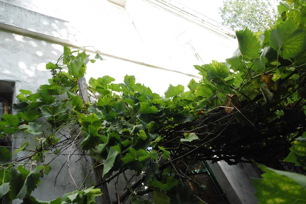 von weiter hergeleiteten Weinstöcke, als sie den Beton am Haus miedern?