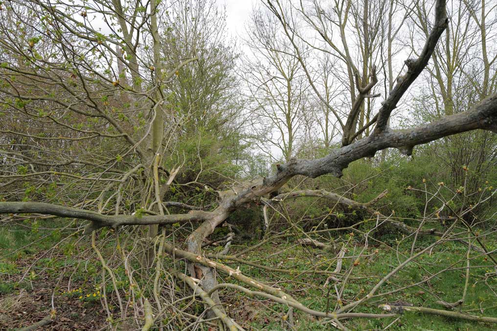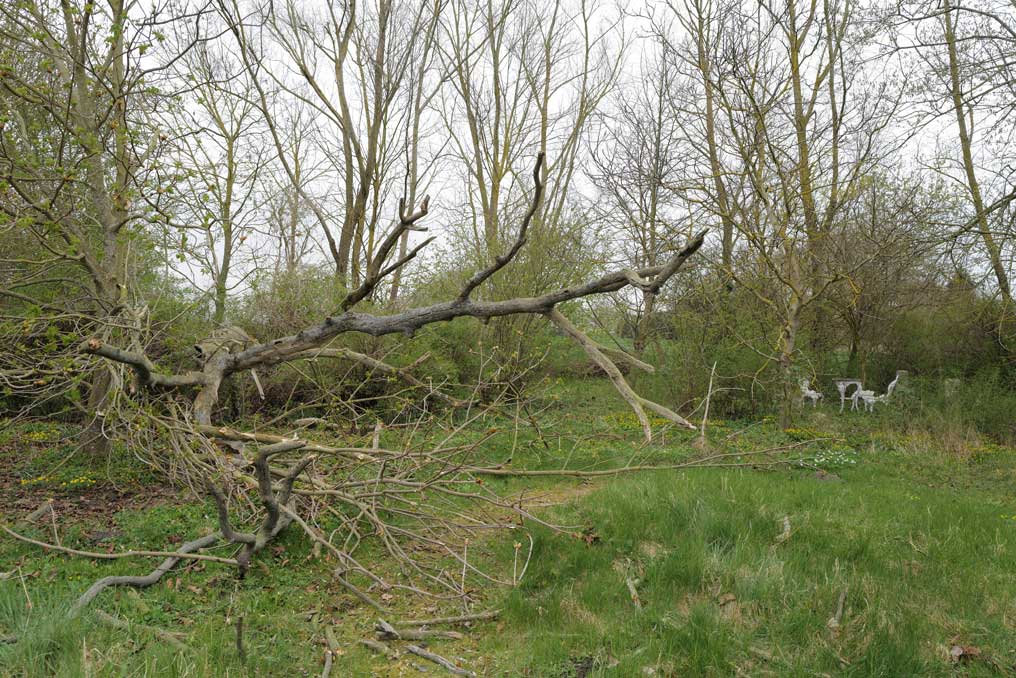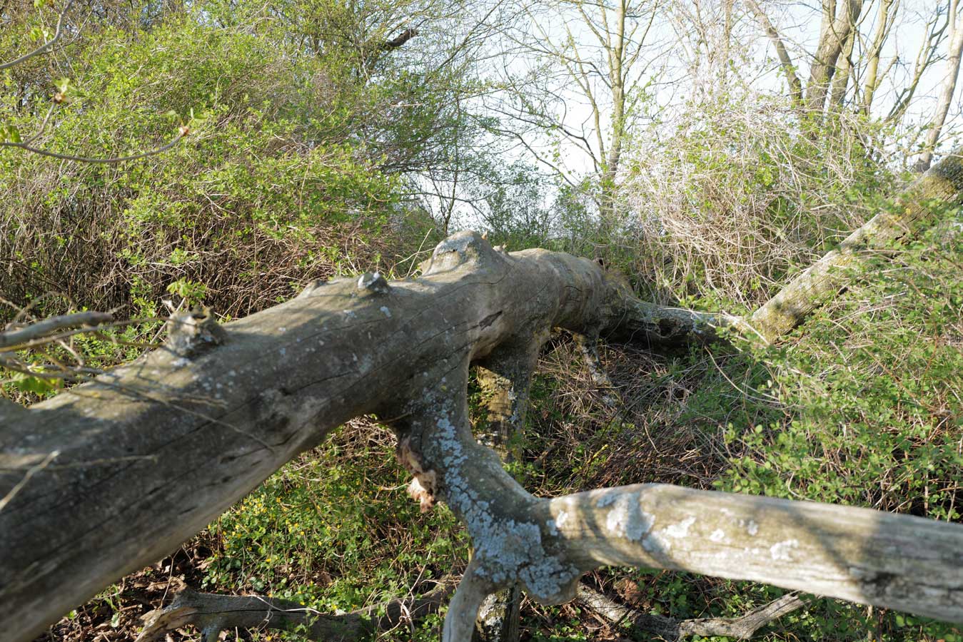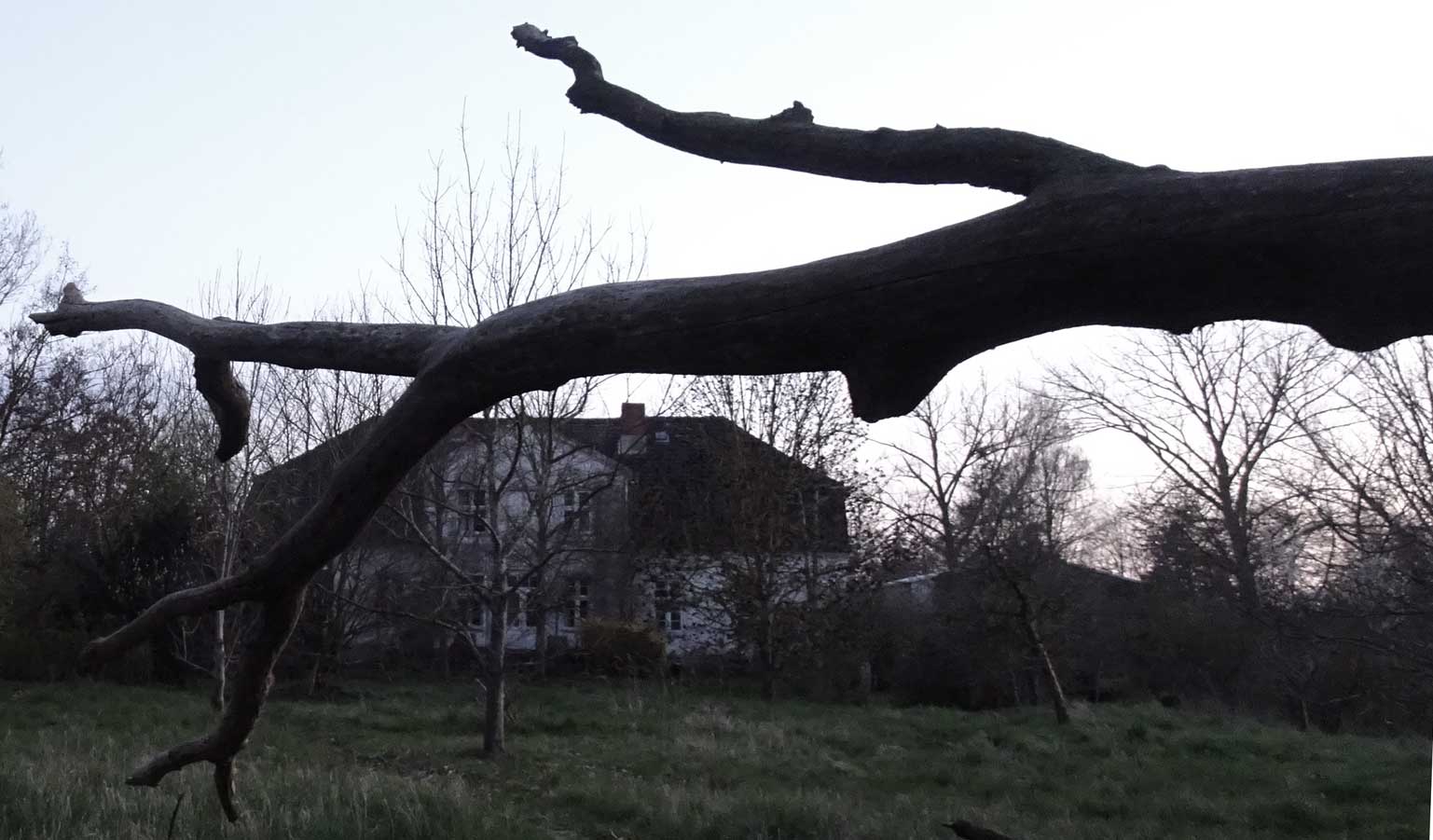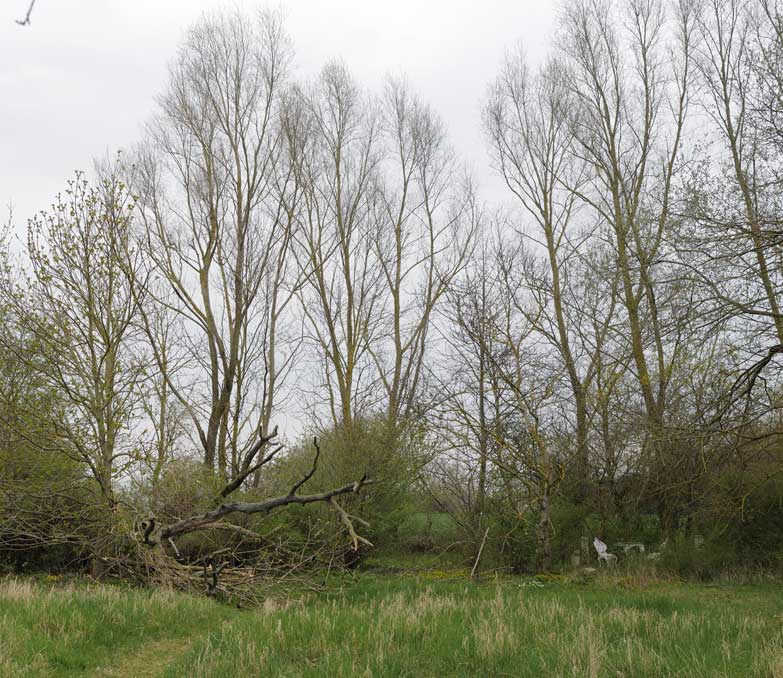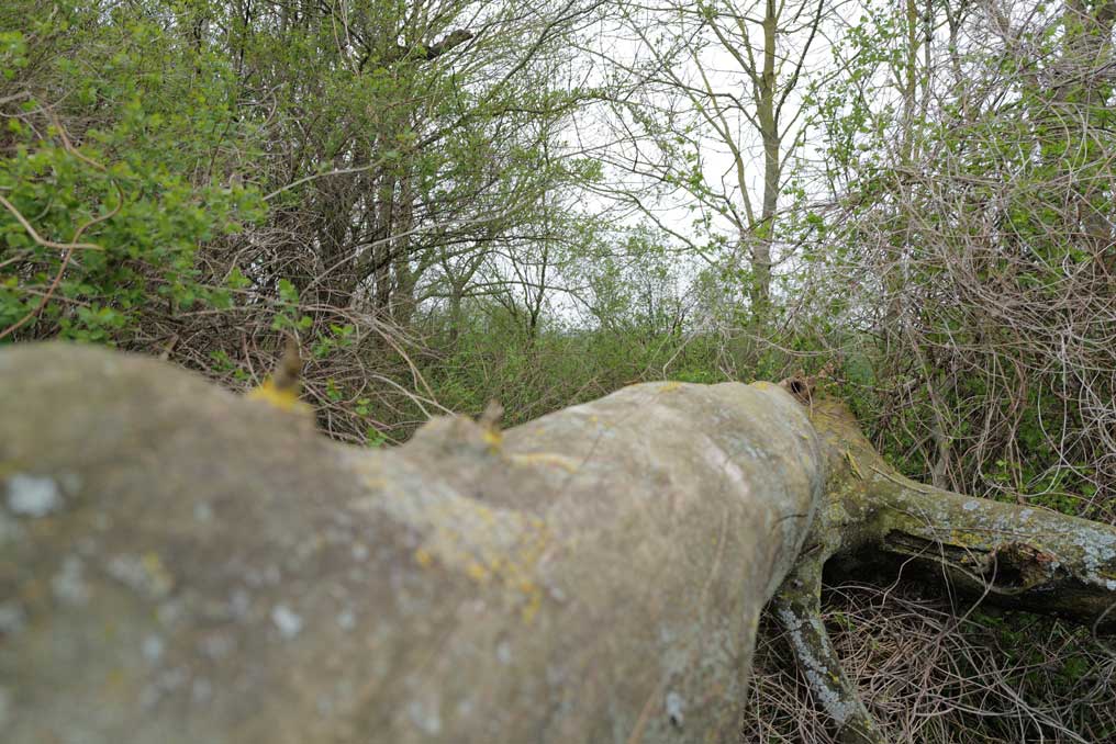 Die Ulme am Graben, wo der Graben früher war, vor den Feldern in den Hecken.
