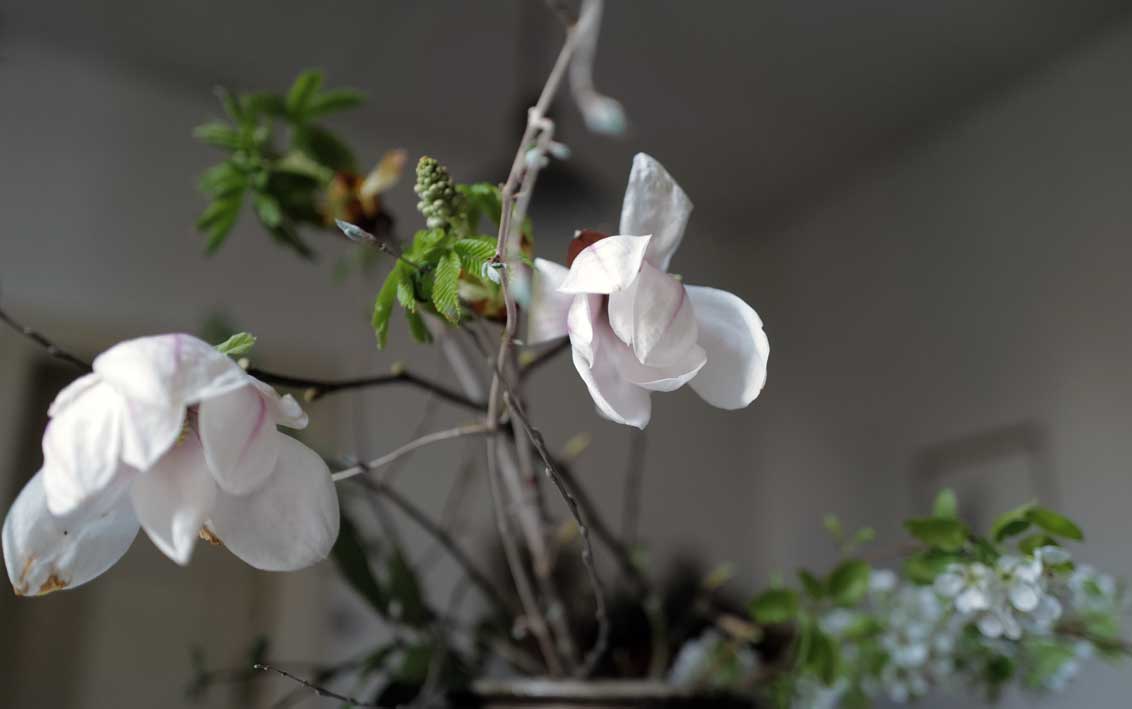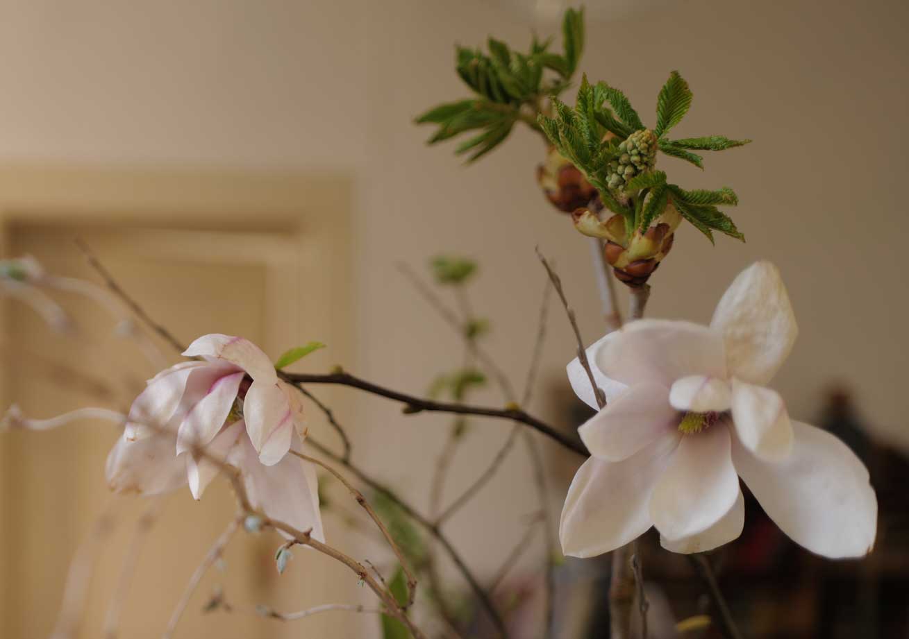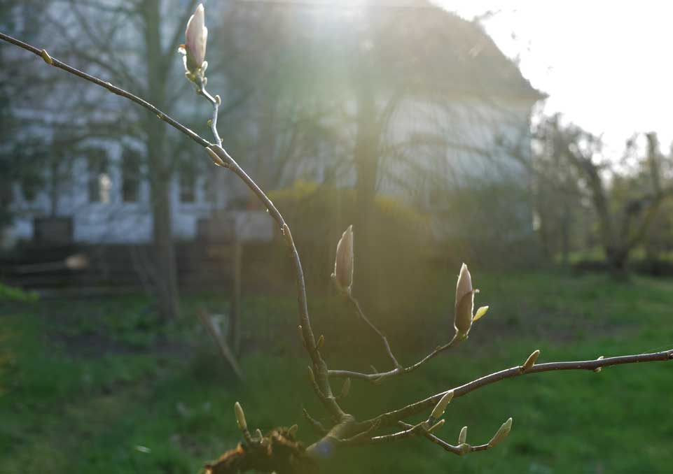 Die Magnolie drüben hofft auf mehr Sonne. Dass sie antworten kann.