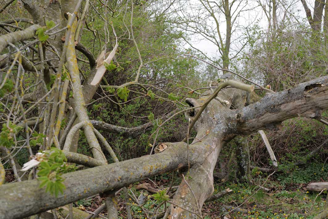 Nun hats ihn doch erwischt, im Sommer der Nacht, von innen der Pilz und von aussen der Sturm.