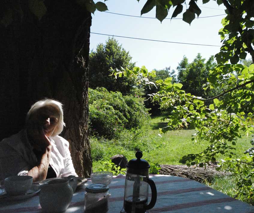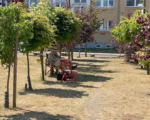 festgehalten wie sie hören und schauen und sich denkend sie schauen und hörend, in den Wiesen selbst nun wenn wenn es summt und fliegt da wie auf offener Bühne. Die Stöcke markieren die im Hohen Grass auszuschneidenen Rosen.