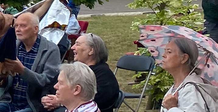 ist es nicht das, woraus alles ist, was wir zeigen und machen. auch in der Wüste des Nichts, nach der Leere nun voll Gesang, der Singenden auch wenn das Harmonium unter den Tönen zerbricht.