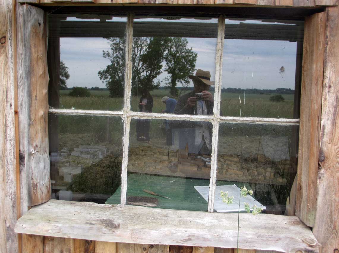 Das gebliebene Holz des Turms schützt die Blicke in den Fenstern der Hütten.