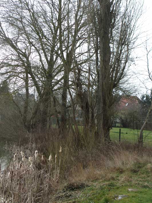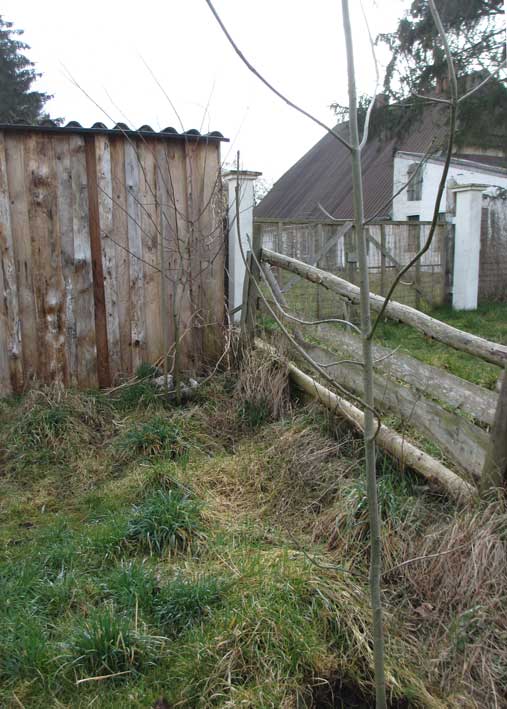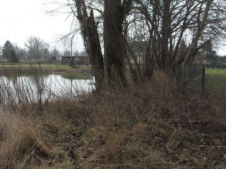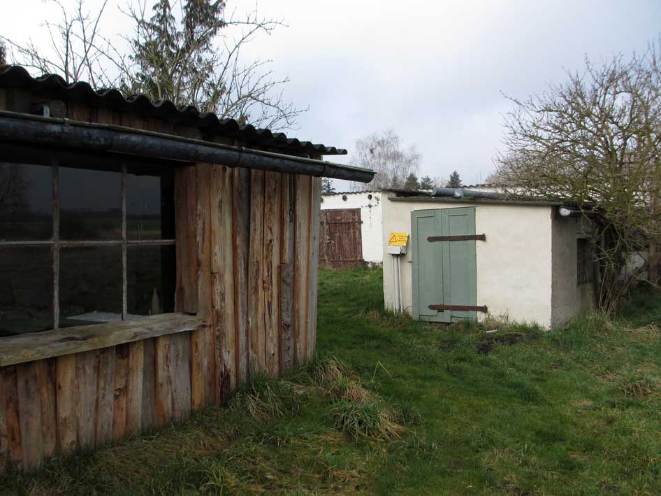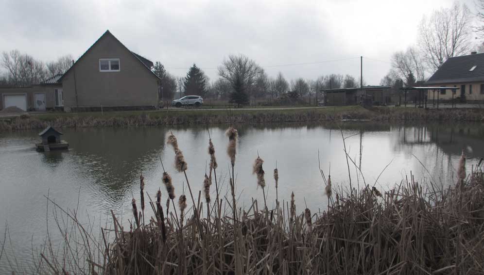 Rest der alten Ställe am Teich des Wegs zur Trebel in letzten Gehäusen ohne sich selbst zu finden.