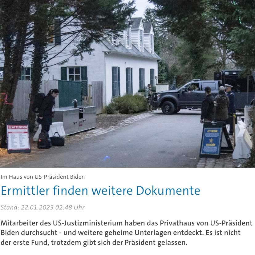 Biden war Vizepräsident neben dem ersten farbigen Präsidenten der USA. Wie gefährdet alle Unterlagen des weissen Hauses waren, sah man vor einem Jahr im Sturm auf das Kapitol. Für den für solche Hursarenritte nicht geeigneten B. sicher seine überraschenste und verdienstvolle Übertretung der Normen.