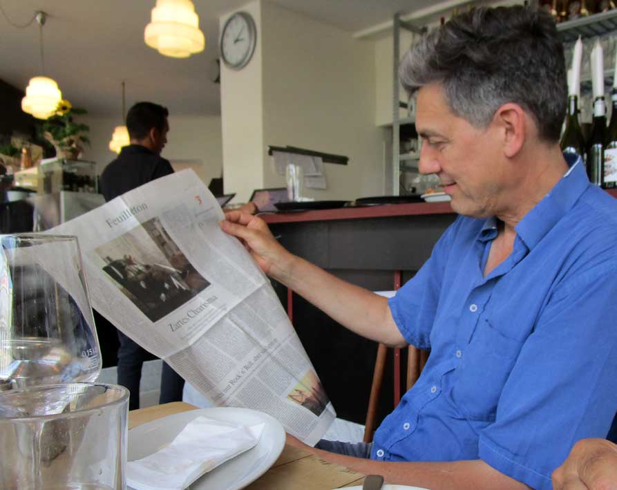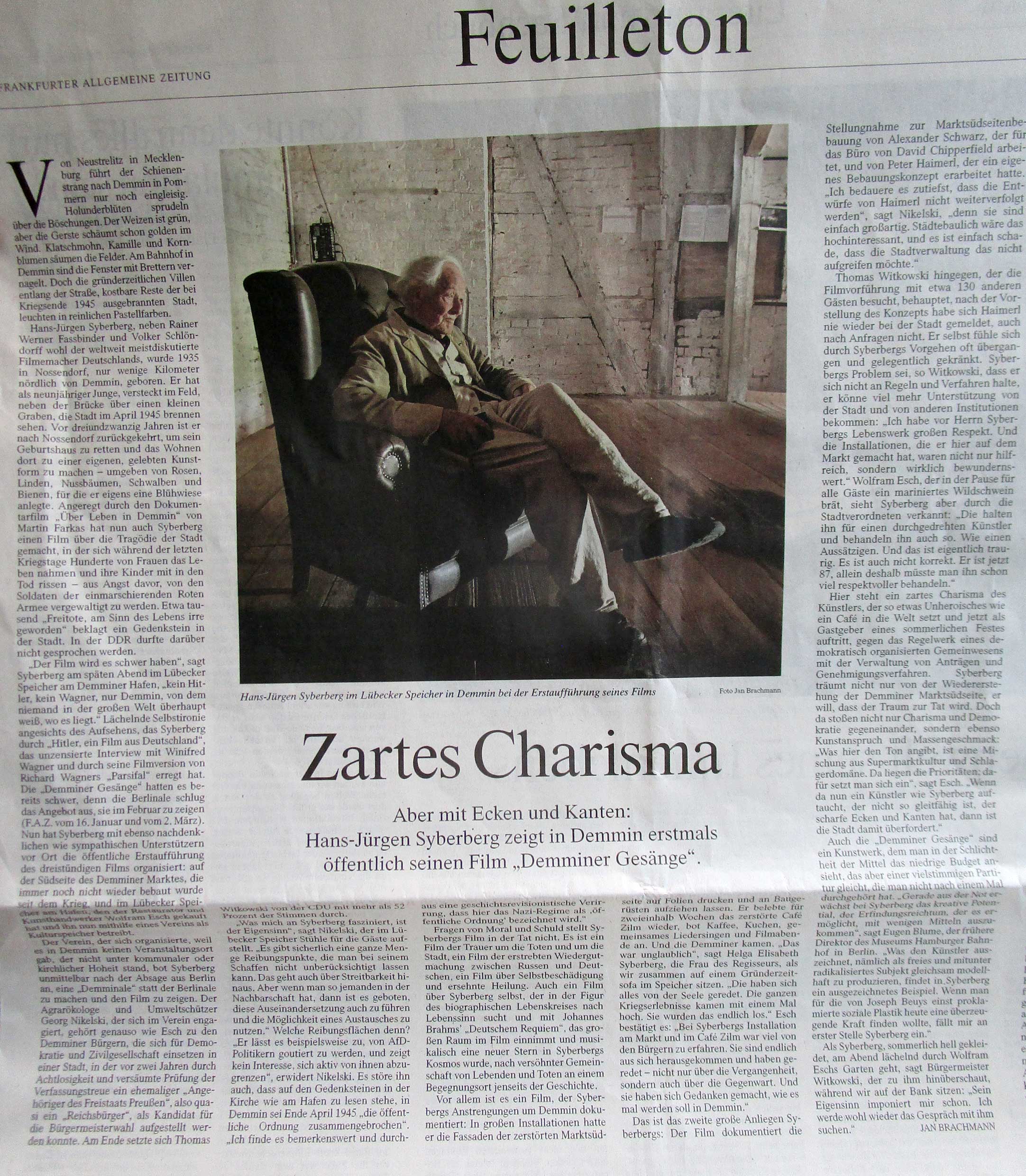 unerwarteter Anruf am Morgen aus der Tiefe der Region, spricht von "genialem" Text in der FAZ, erkennend, den Vorteil auch für sie, die Ausgeschlossenen, plötzlich auf ersten Seiten des Landes. Durch so Einen und so was?