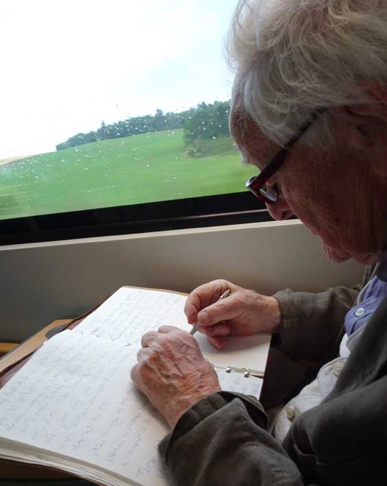 die Brücke zum Weg, aufgelassen am Feld ohne Lerchen, mit Rehen, die zu uns fliehen, wenn sie sterben.
