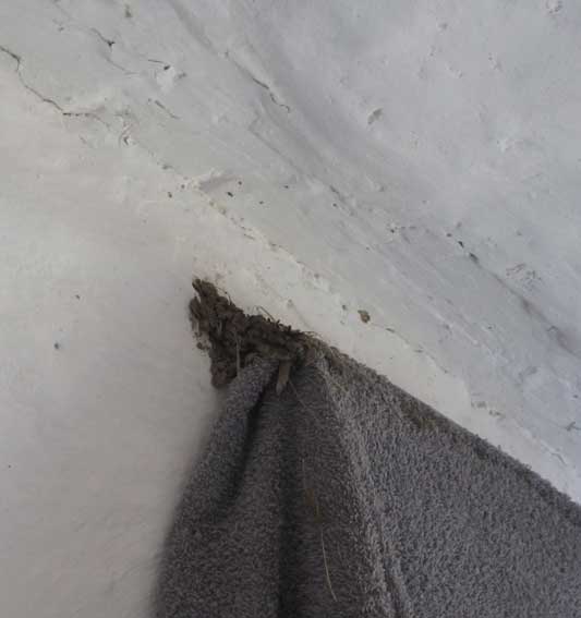 Zurück, haben inzwischen die Schwalben im Bad über dem verhängten Spiegel angefangen ihr Nest zu bauen.