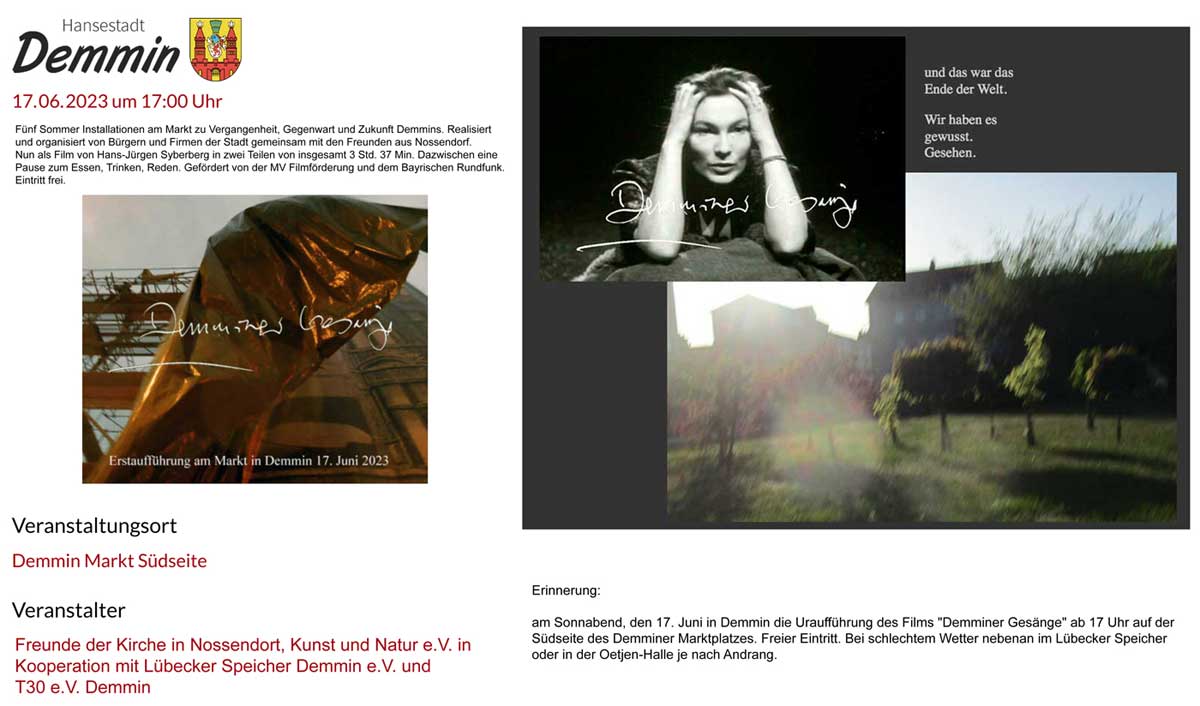 Arbeitsmaterialien zur Gestaltung des Markts in Demmin am 17. Juni für eine Projektion der Demminer Gesänge als Uraufführung des Films