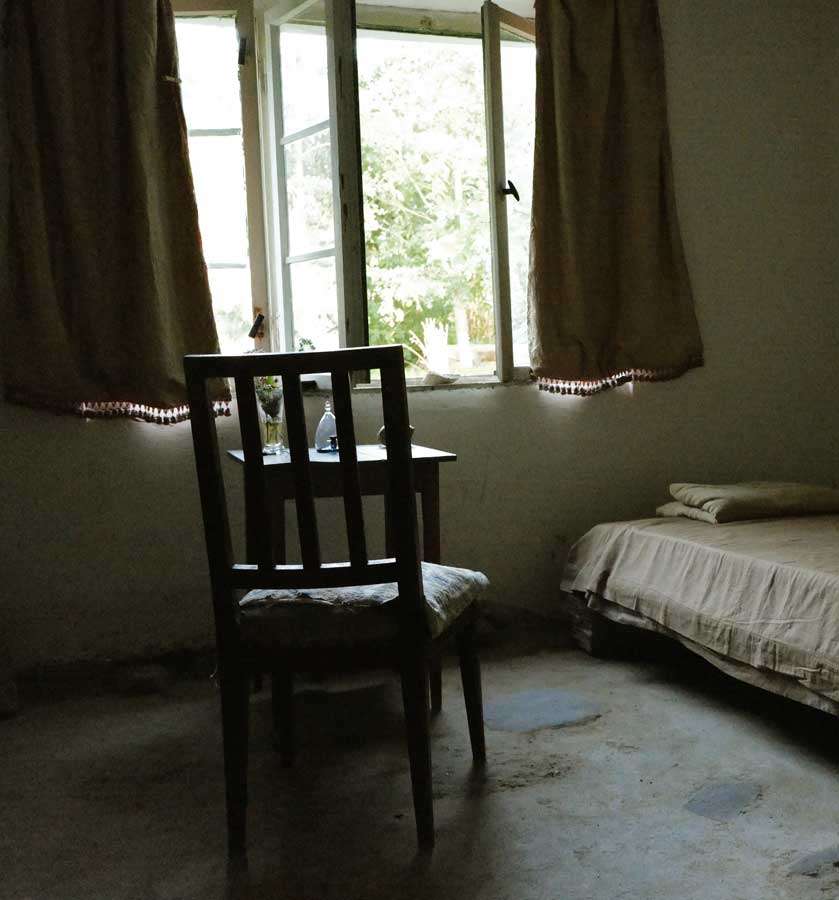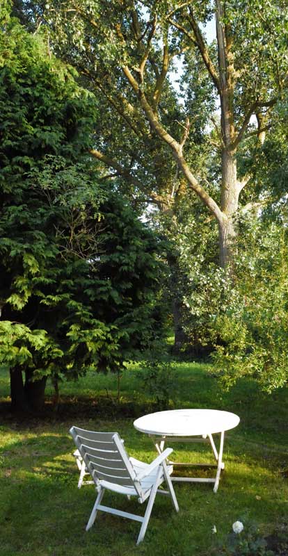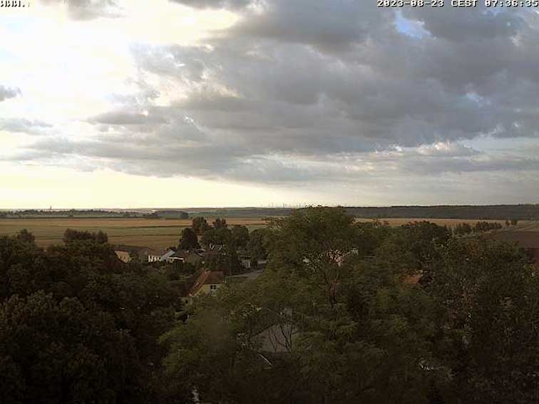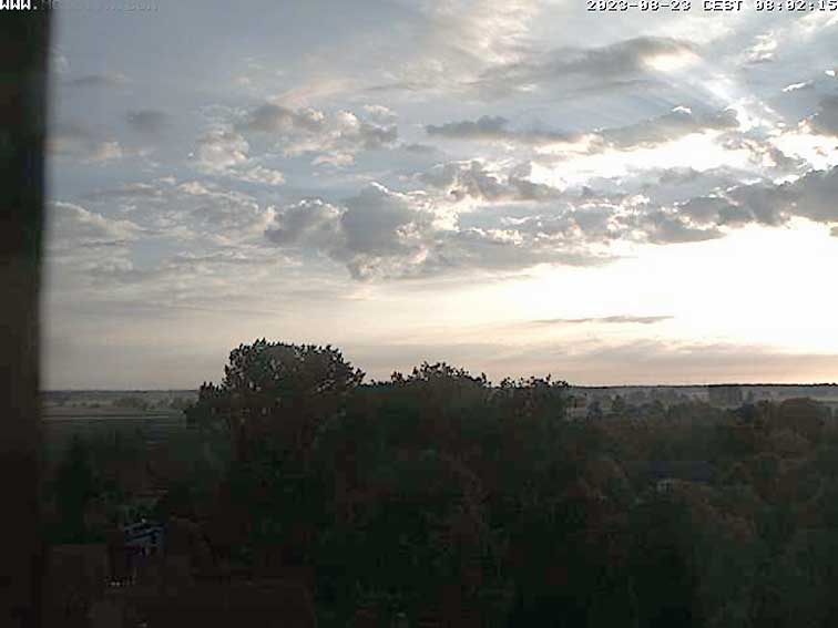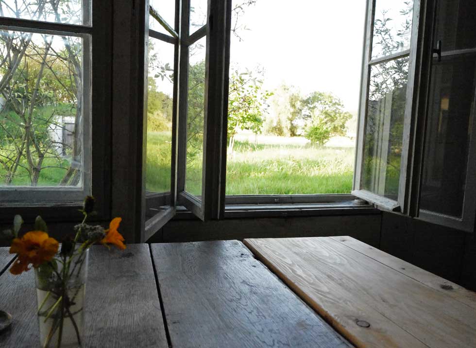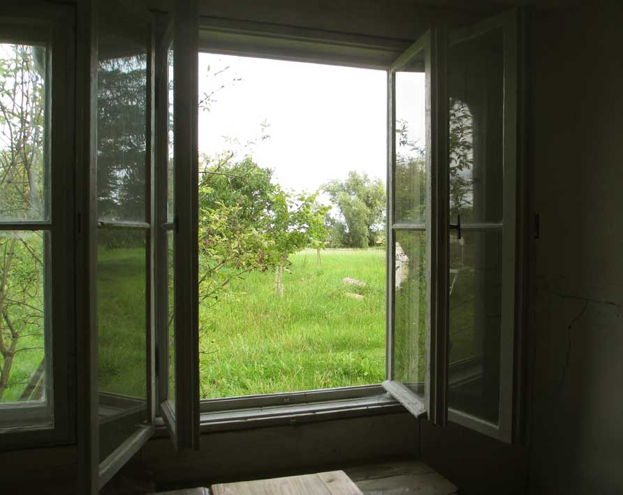 Zwischen den Dächern, doch, drängt es sich wieder hoch, der Turm. Aus dem Fenster hier gesehen.