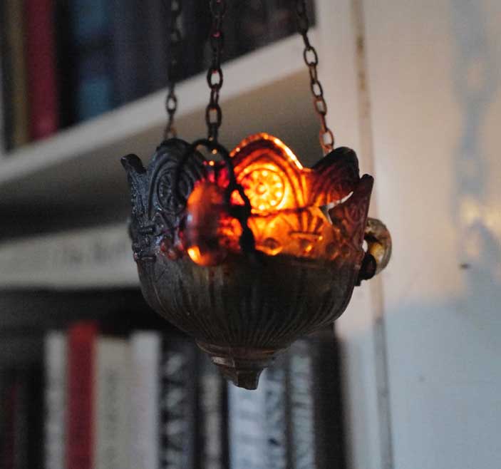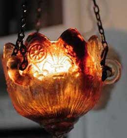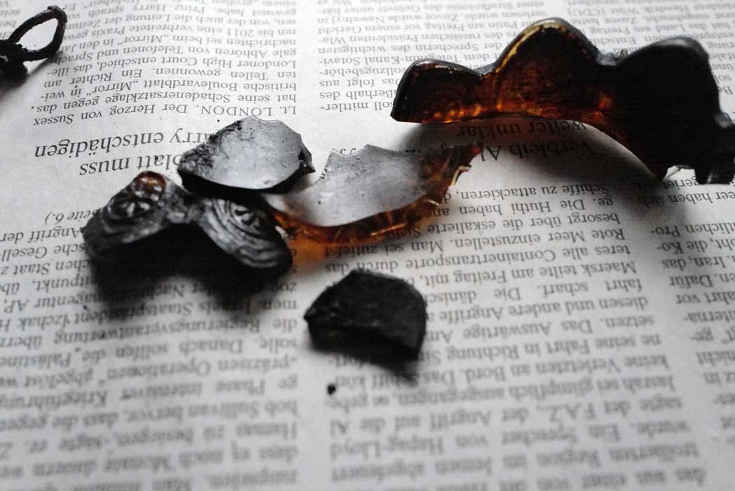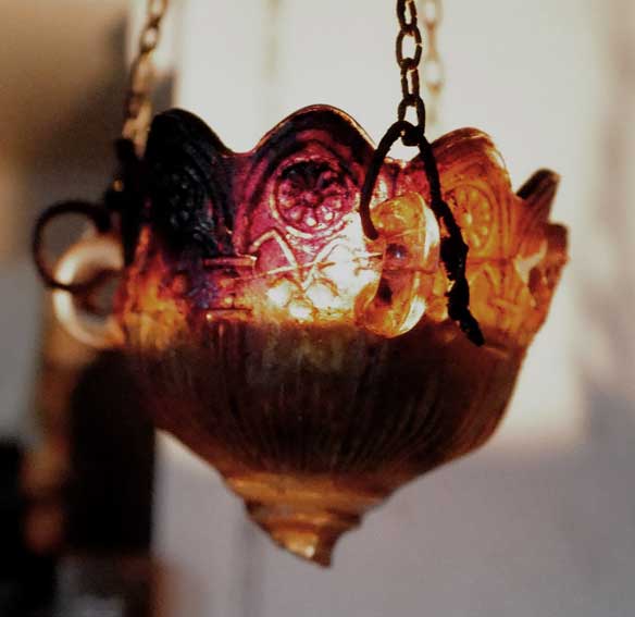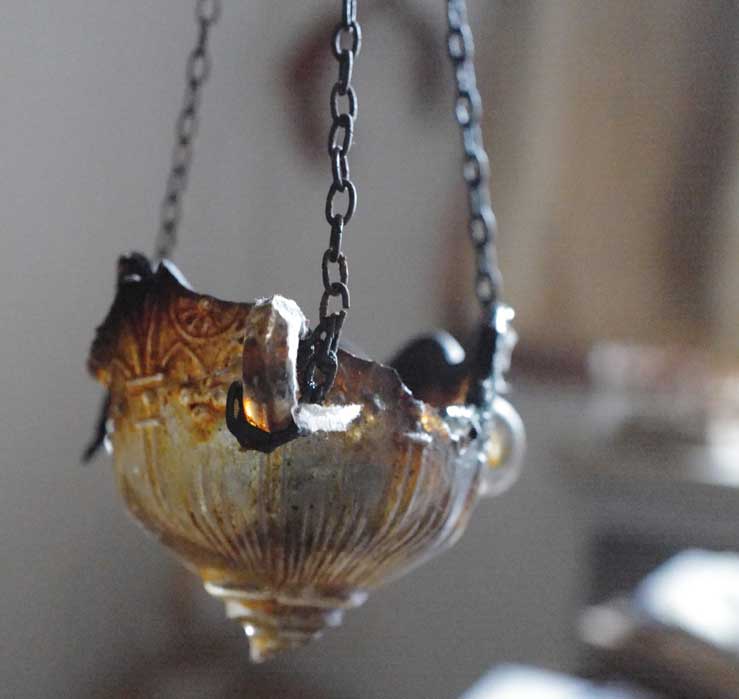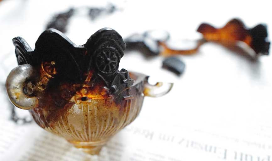 Die Schale für das Öl aus Moskau hergeholt, in Flammen, zerbrach - und nun wieder entstand