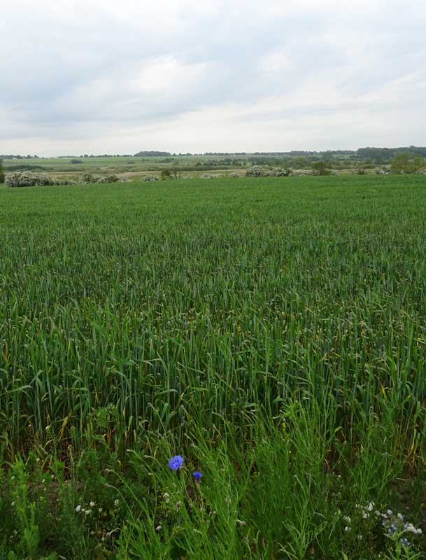 das solche Vereinreinigung im Sack des Mehls nicht braucht, wenn die Maschinen nicht drumrum fahren können. Und nicht die Margeriten dazu. Hinten oben der Horizont zeigt die weiss blühende Weite dessen was wir KulturLandschaft doch noch nennen.